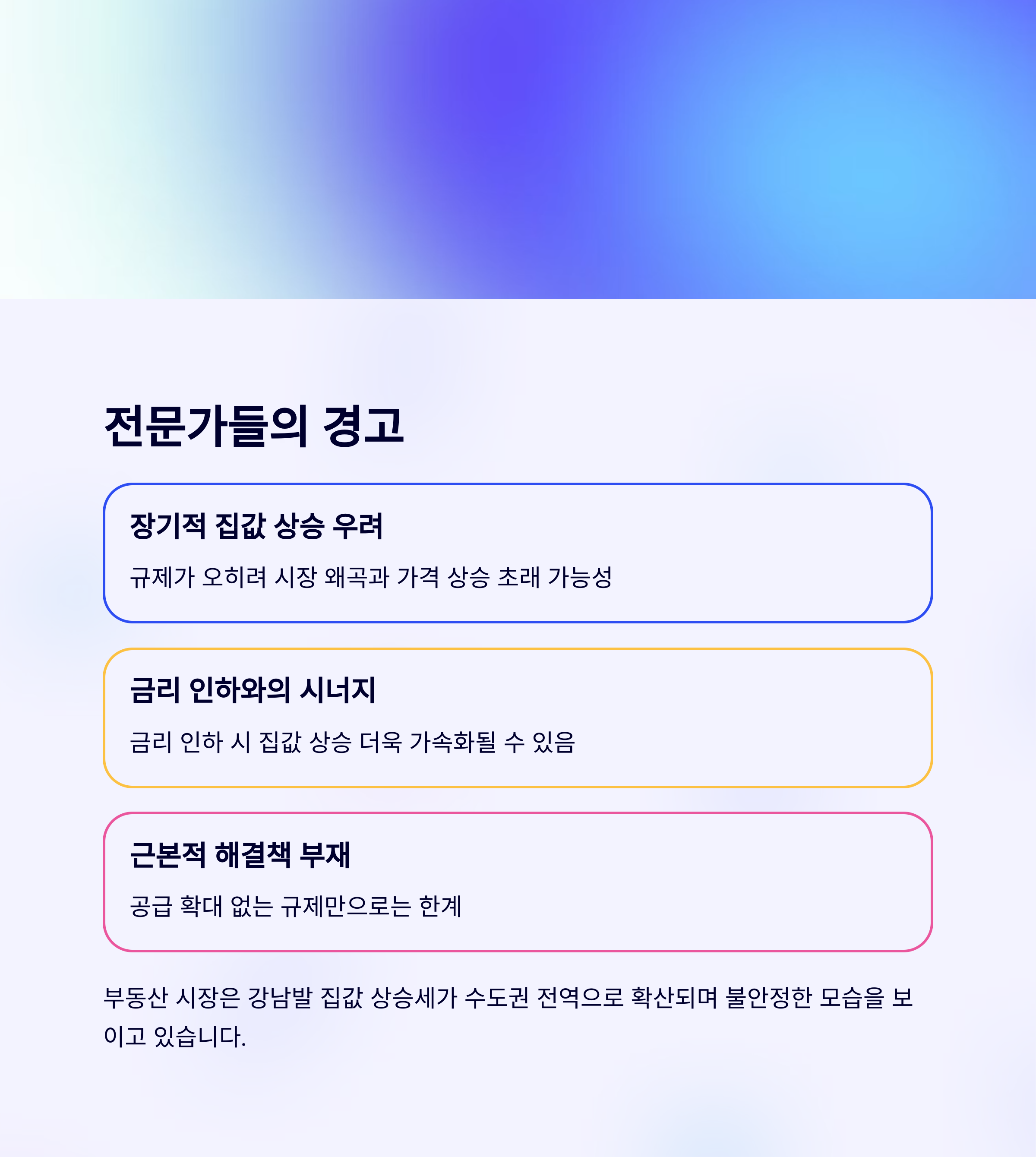 토허제와 부동산 상승장은 중요한 시점에서 맞물려 있는 문제입니다. 정부와 시장 참여자들은 이를 해결하기 위해 협력해야 하며, 경제적 부담을 최소화하면서 주거 안정성을 확보할 수 있는 방안을 모색해야 합니다. 이 과정에서 정책적 조정이 필요하며, 그 결과로 안정적이고 지속 가능한 부동산 시장을 만들어 갈 수 있을 것입니다.