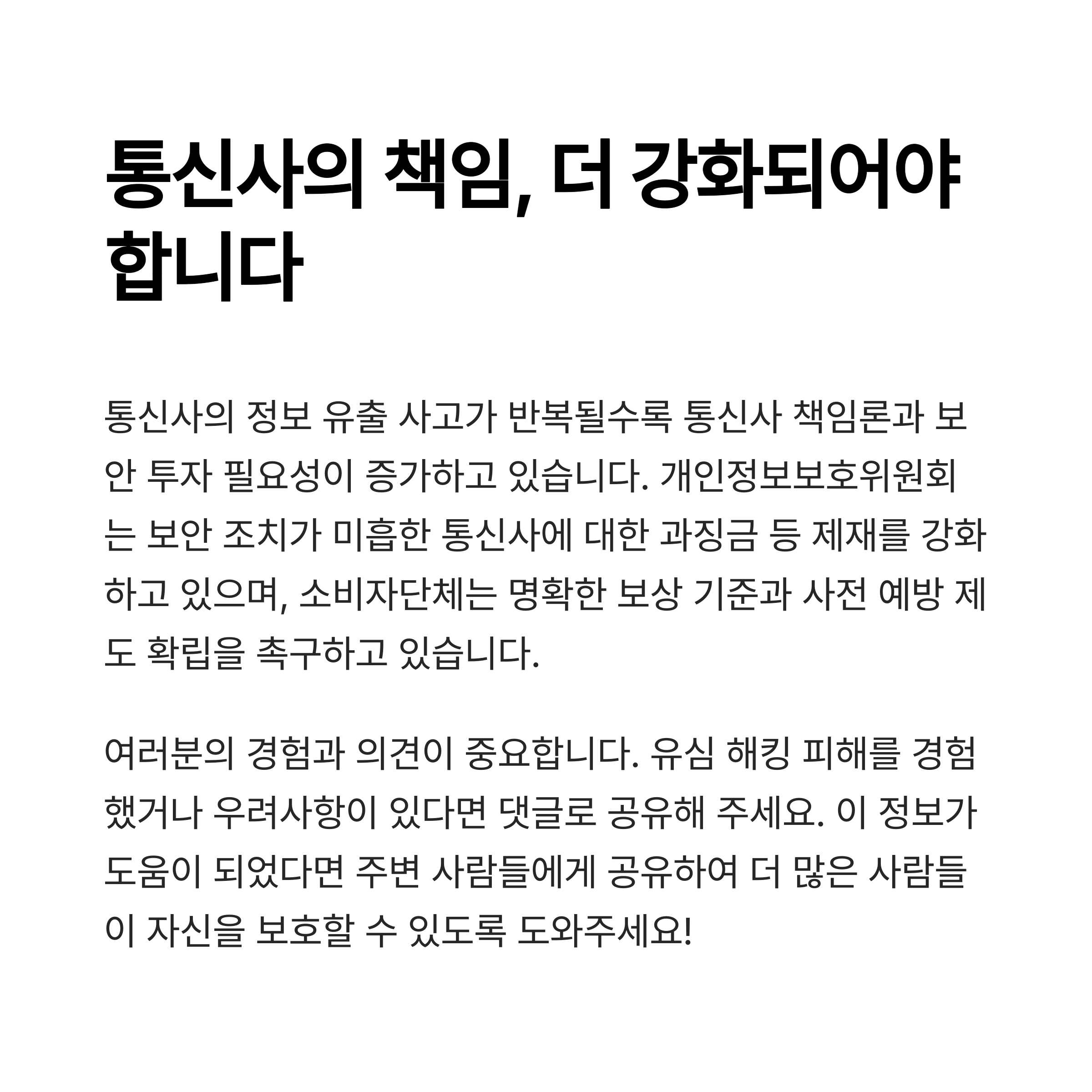 "통신사의 적극적 보안 강화 없이는 피해를 막을 수 없습니다"