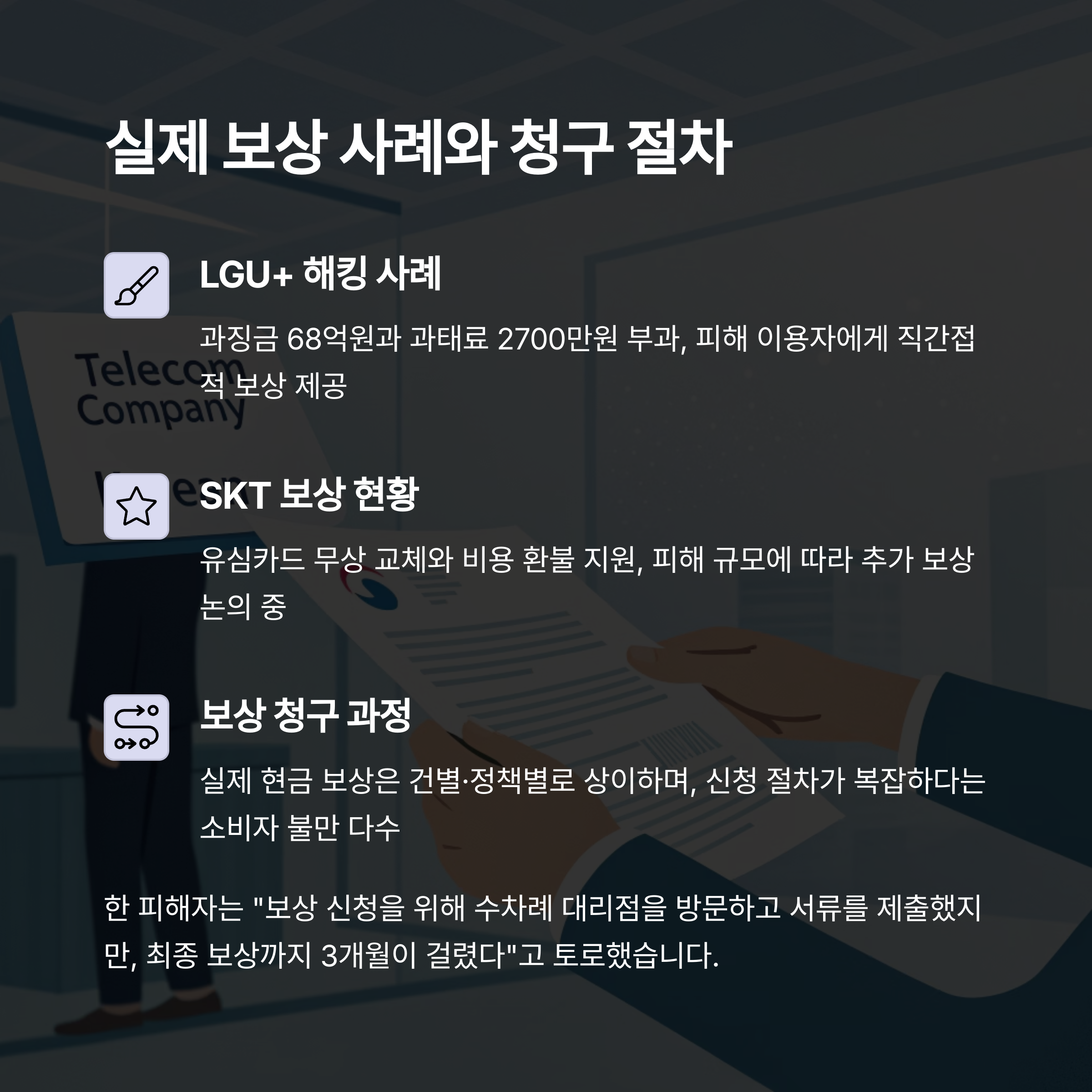 SKT 고객 김모씨는 약 2,000만원의 금융 피해를 입고, 통신사로부터 300만원의 보상금을 받았습니다