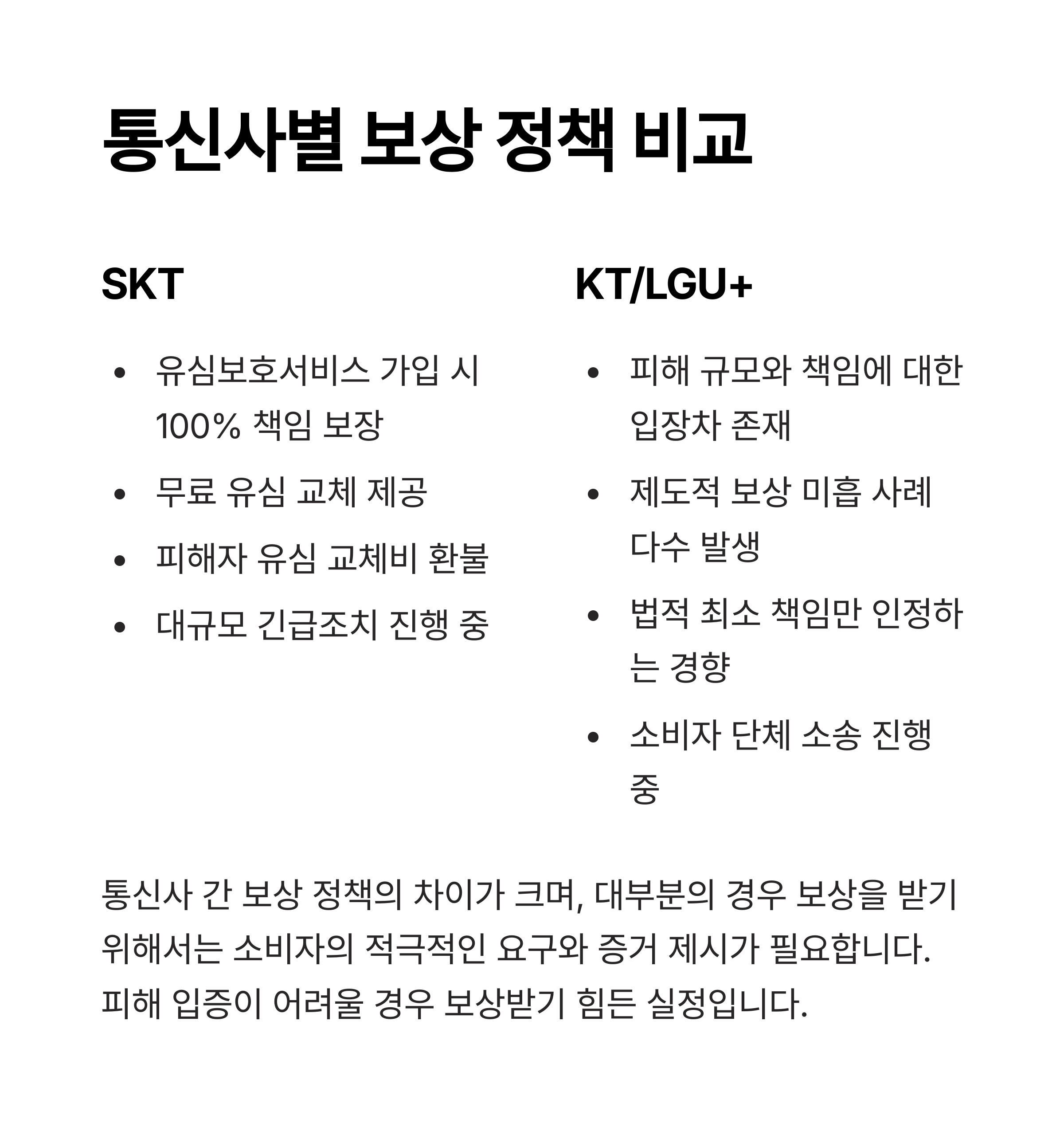 SKT는 유심 해킹 피해에 대해 일정 금액을 보상하지만, 조건이 까다롭습니다