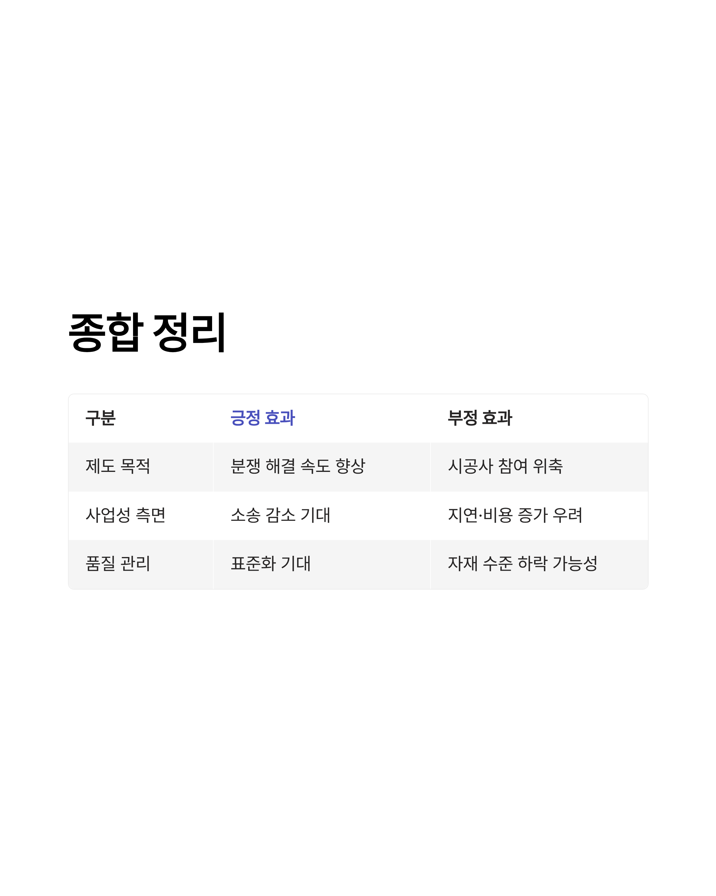 | 제도 목적 | 분쟁 해결 속도 향상 | 시공사 참여 위축 |
