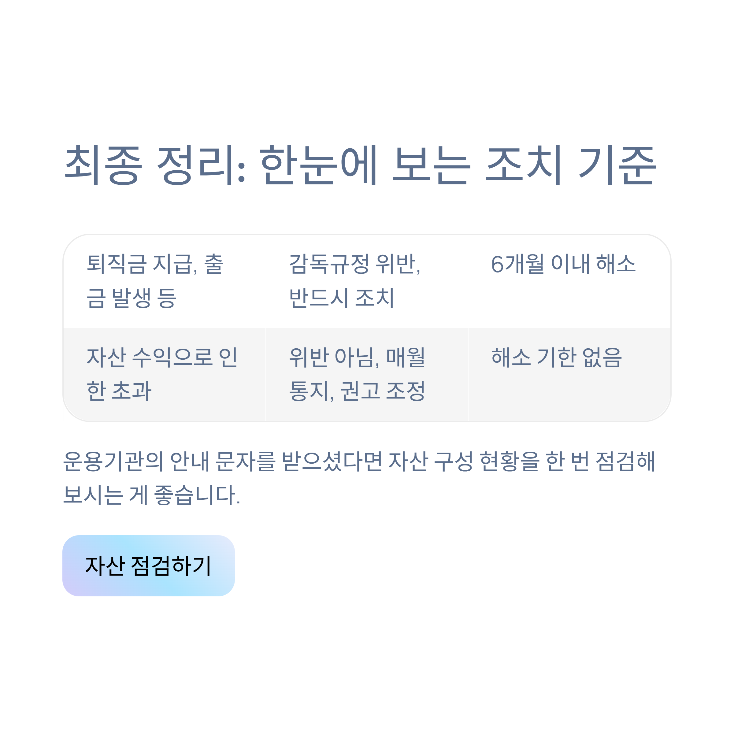 최종 정리: 한눈에 보는 조치 기준