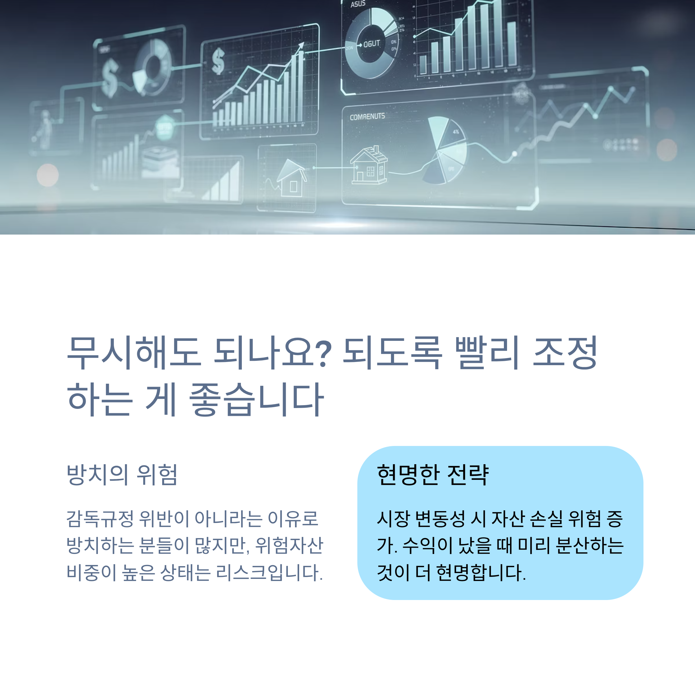 위험자산 비중이 높아진 상태를 계속 유지하는 건 리스크이기도 합니다.