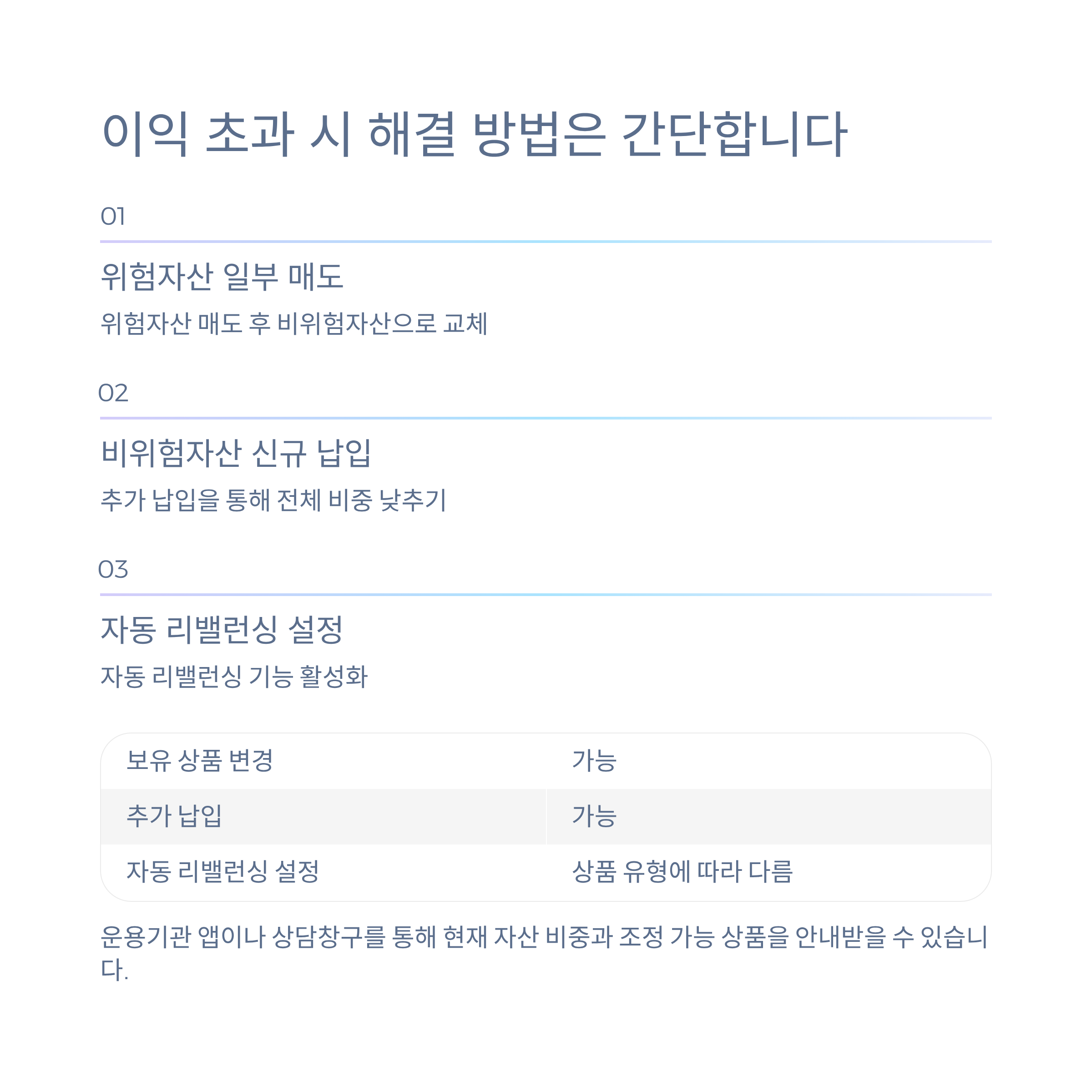 - 비위험자산 신규 납입을 통해 전체 비중 낮추기