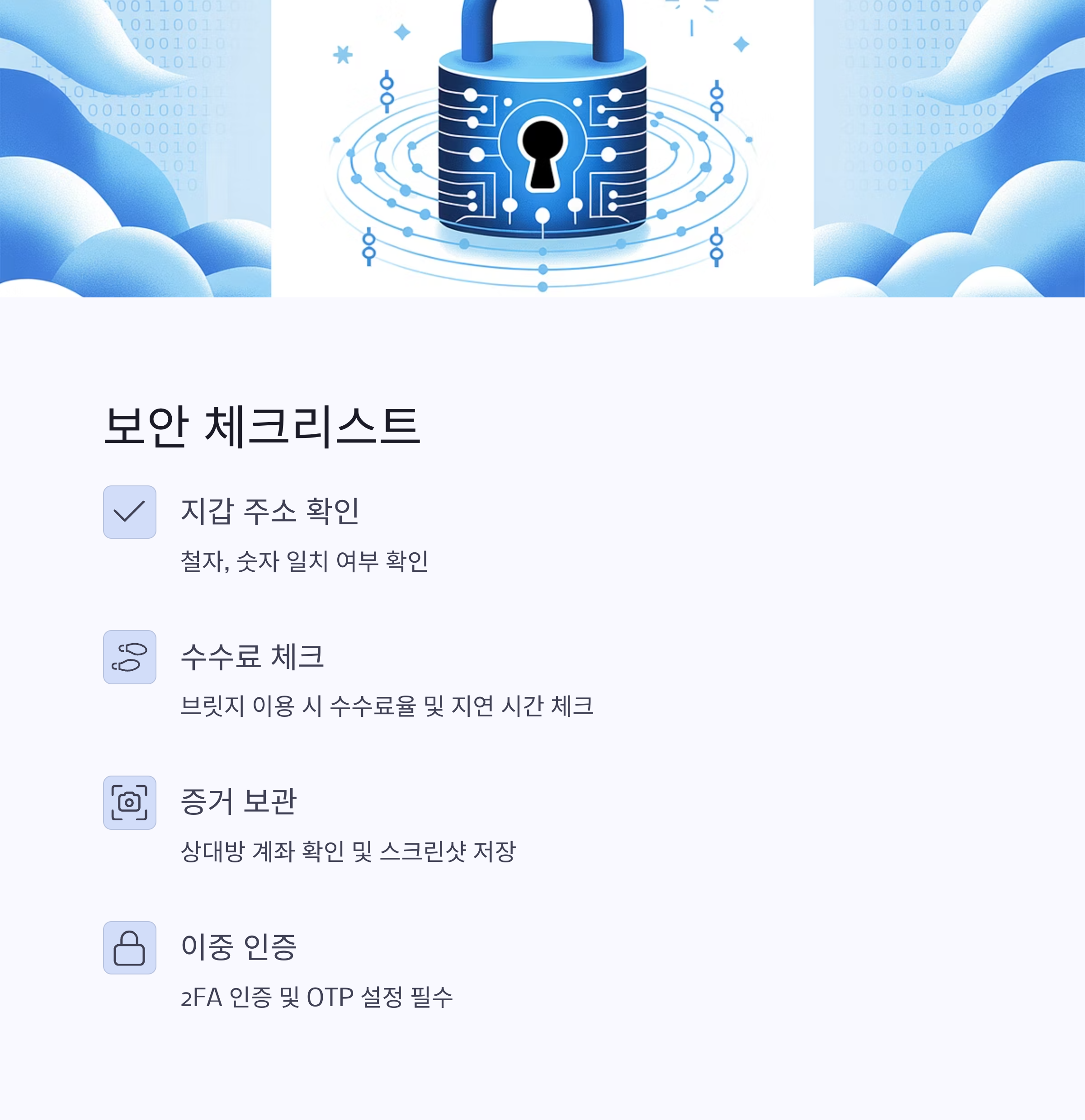 - "지갑 주소 복사 시 철자, 숫자 일치 여부 확인"