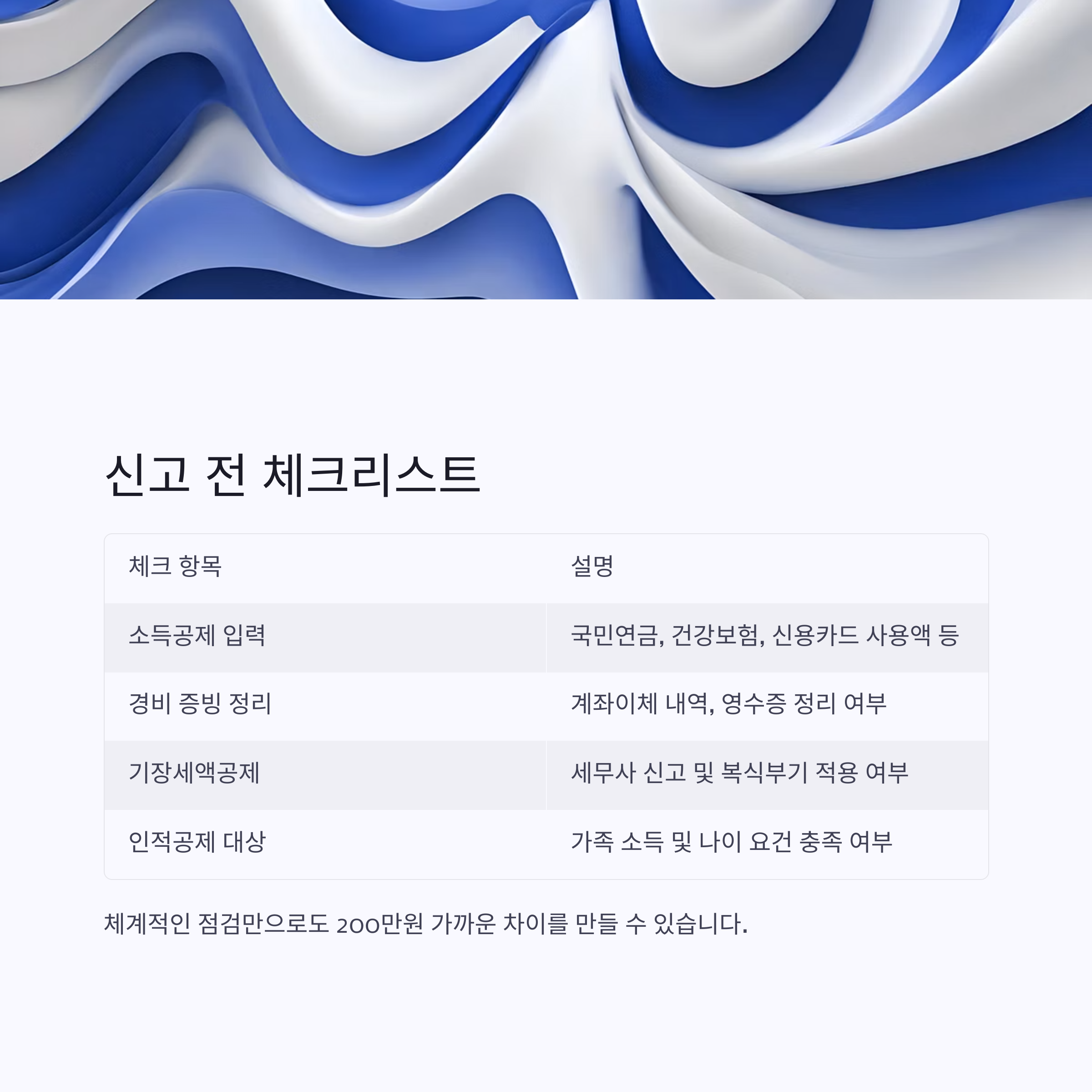 불필요한 세금 납부 없이 똑똑하게 환급 받으시길 바랍니다.
