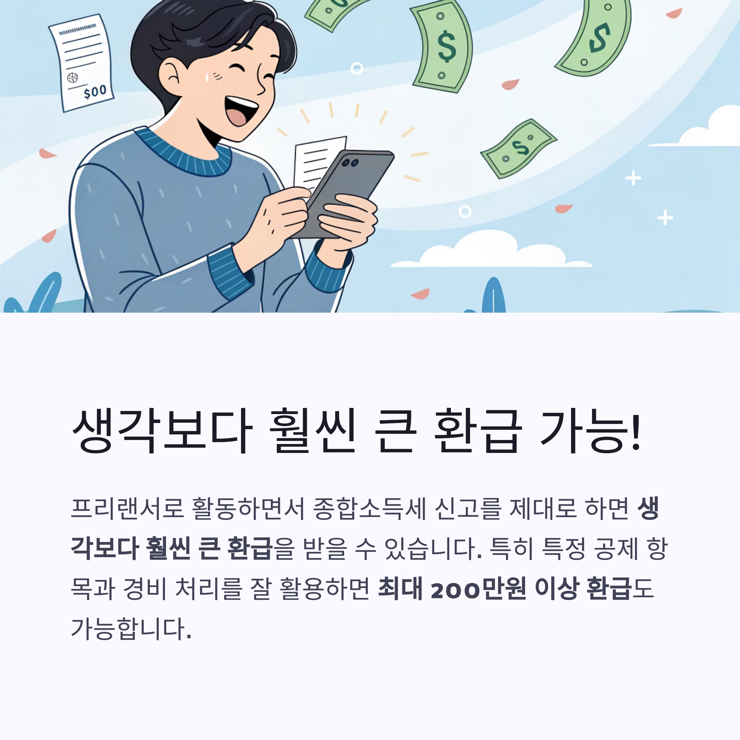프리랜서로 활동하면서 종합소득세 신고를 제대로 하면 생각보다 훨씬 큰 환급을 받을 수 있습니다.