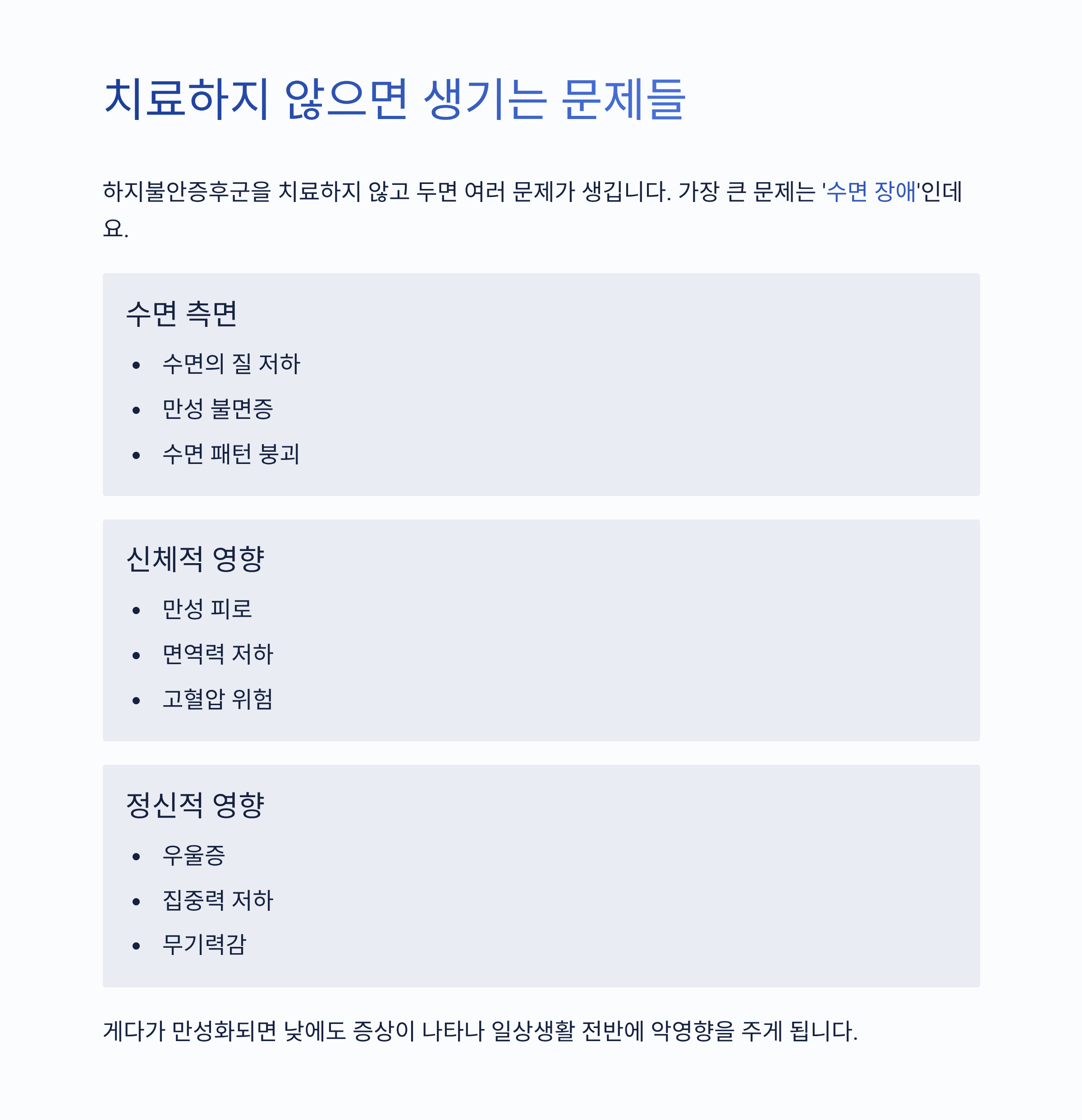 | 다리 떨림 | 낮 시간 집중력 저하 |