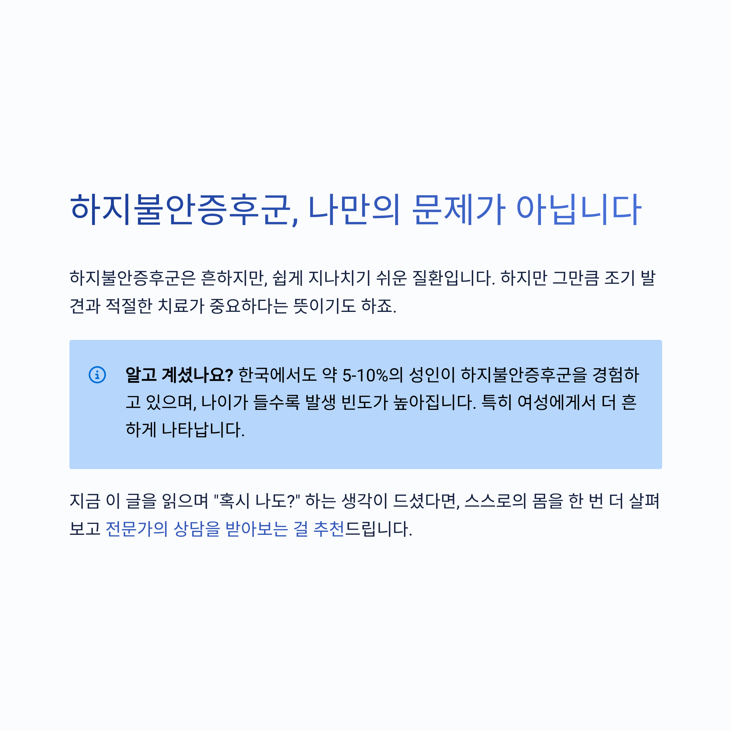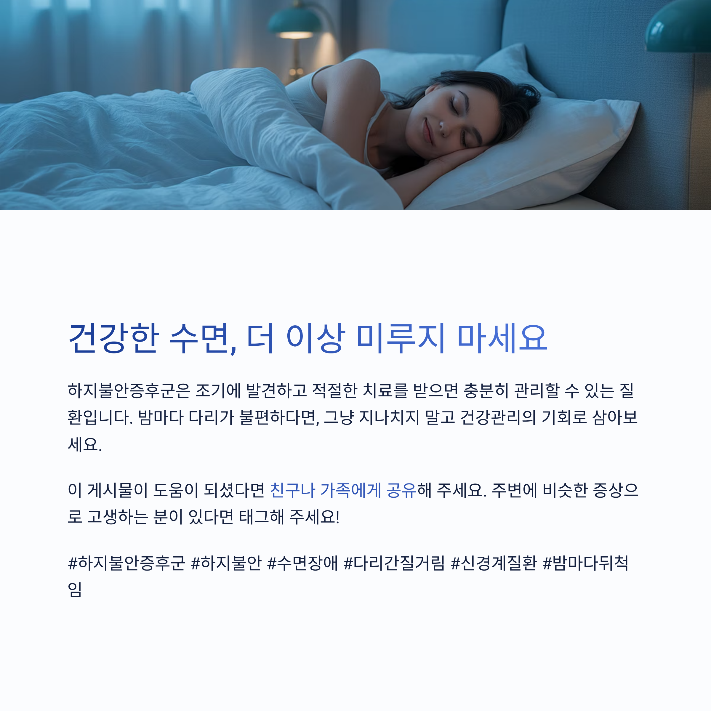 하지불안증후군은 흔하지만, 쉽게 지나치기 쉬운 질환입니다.