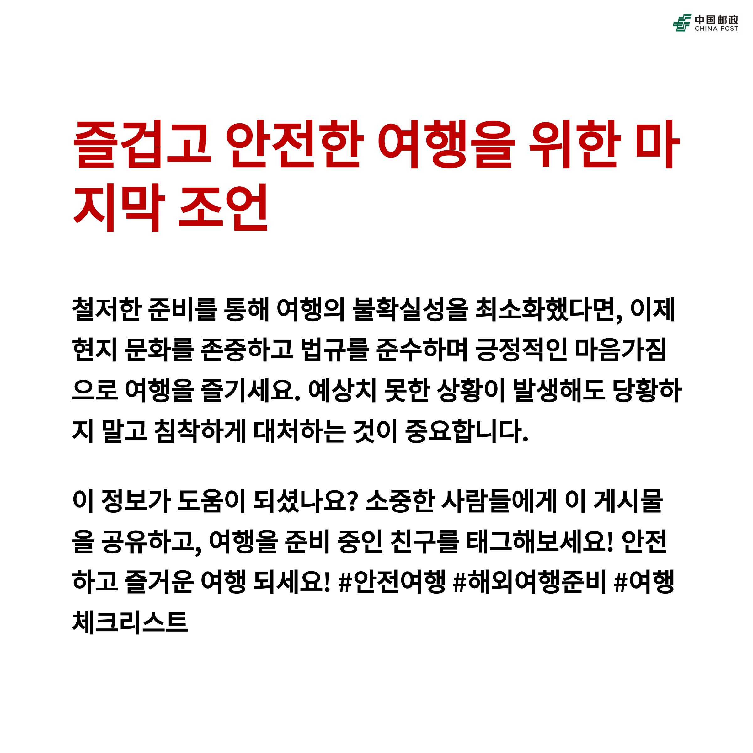철저한 준비로 더욱 안전하고 즐거운 여행을 즐기세요