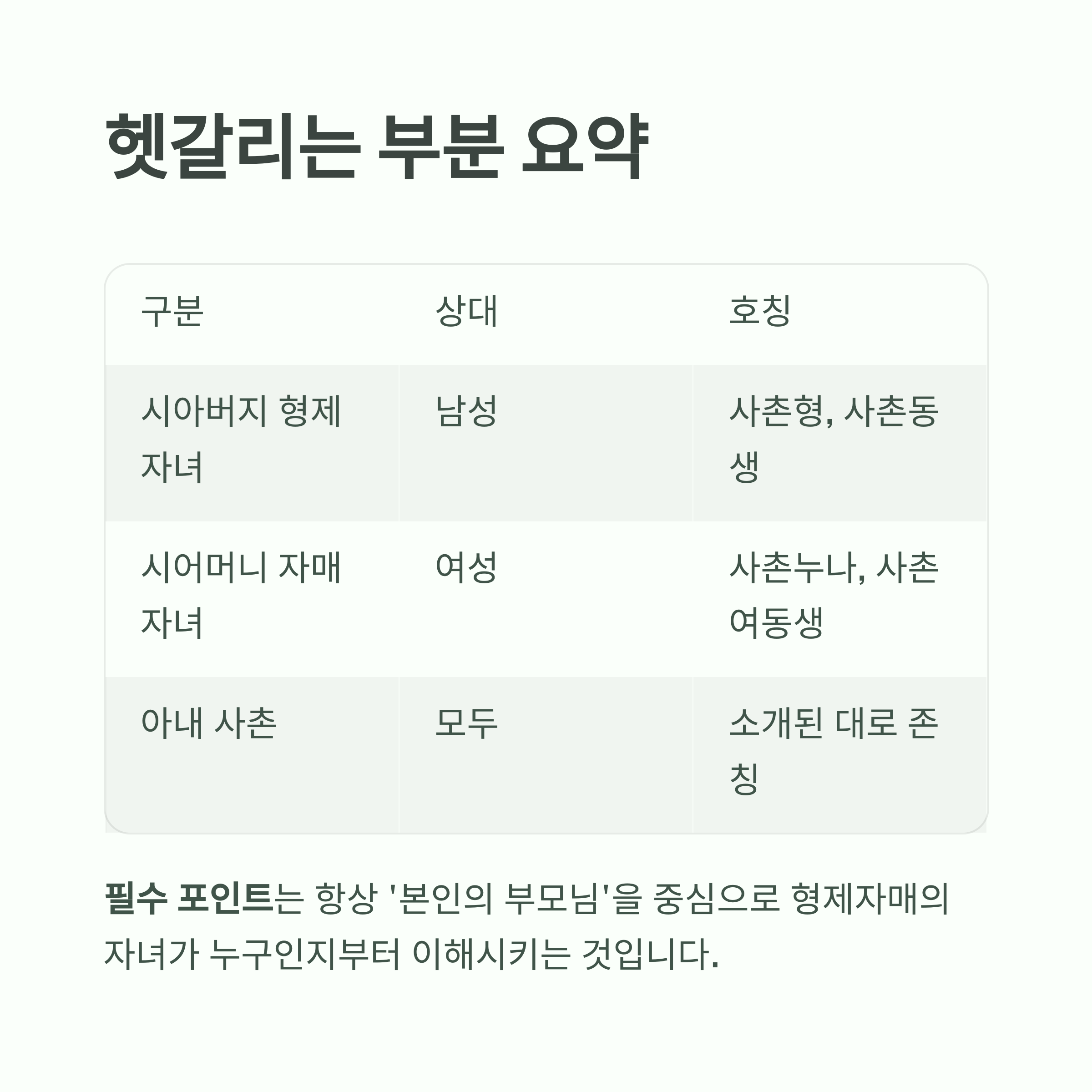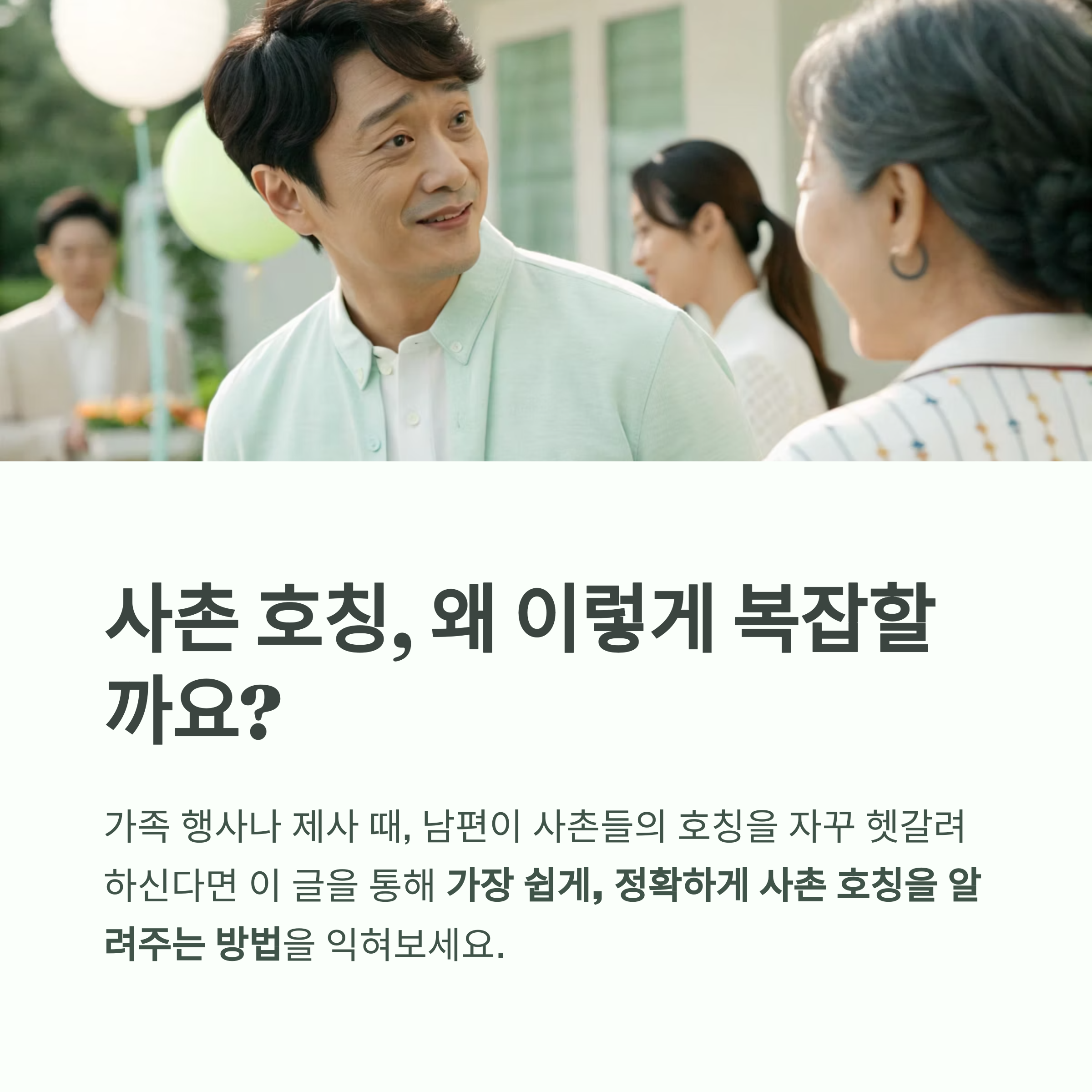 가족 행사나 제사 때, 남편이 사촌들의 호칭을 자꾸 헷갈려 하신다면
