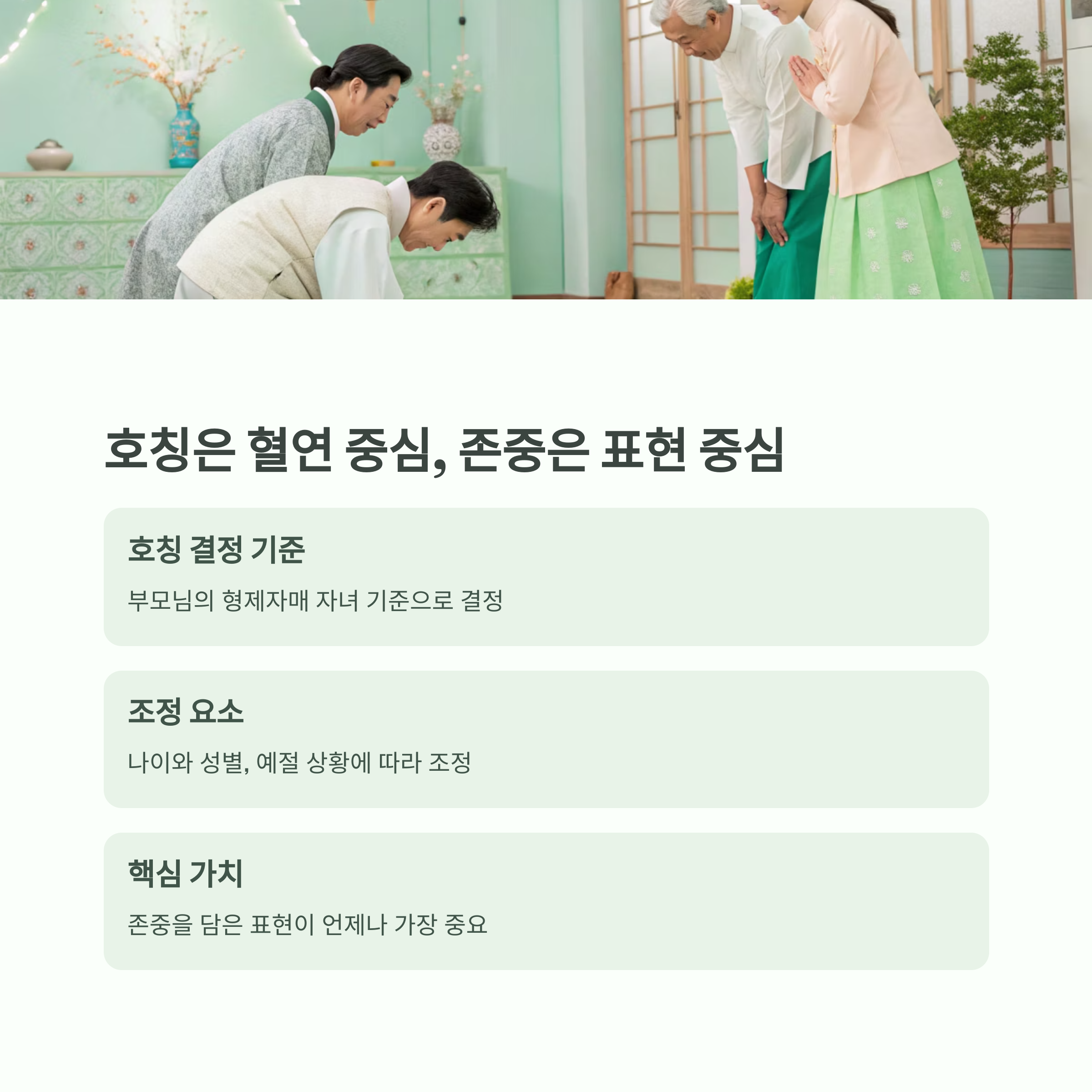 한 마디로 요약: 호칭은 혈연 중심, 존중은 표현 중심