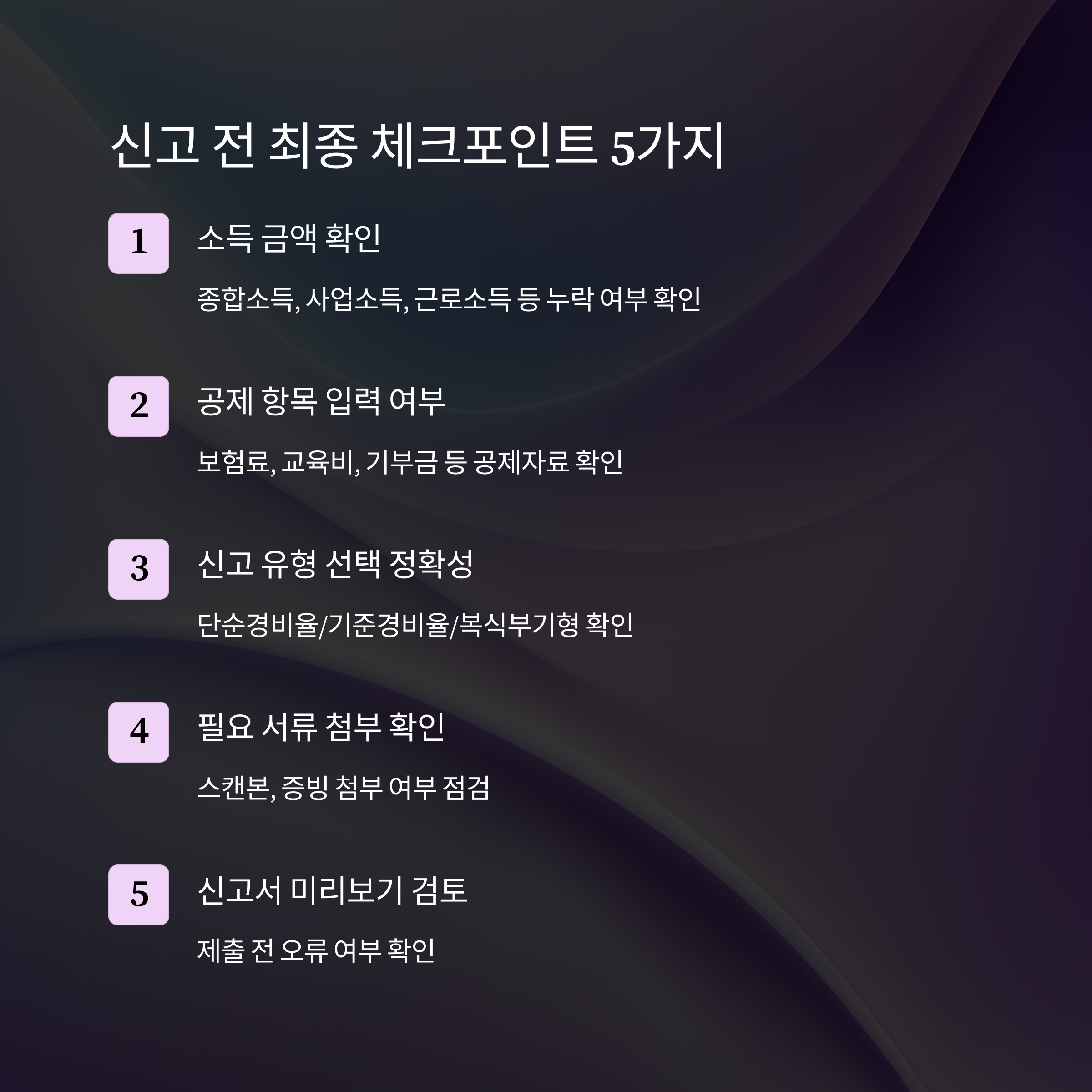 신고 유형 선택 정확성 | 단순경비율/기준경비율/복식부기형 확인 필요 |