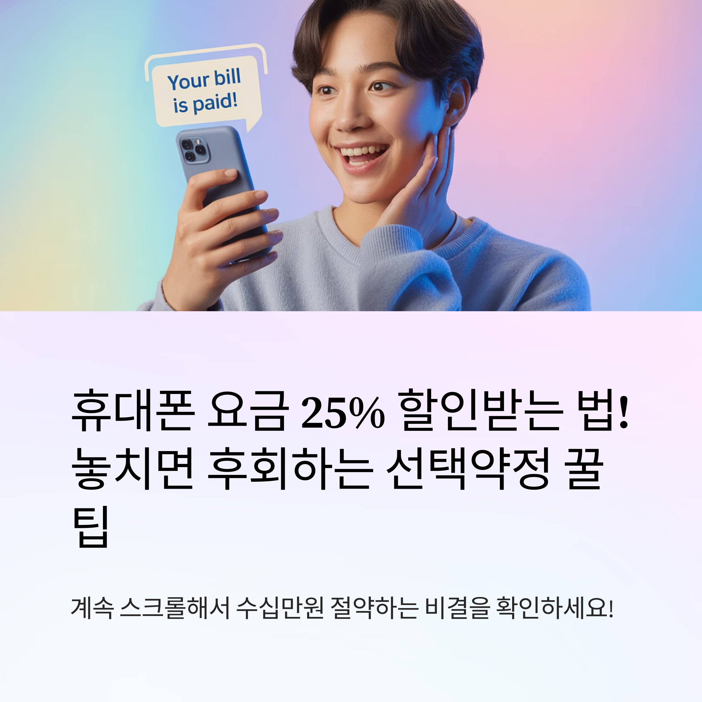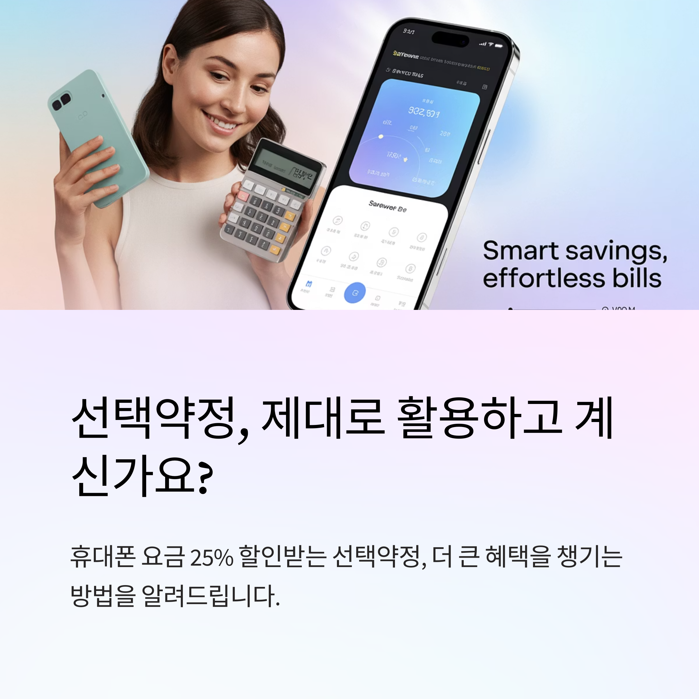 휴대폰을 구매할 때 선택약정을 통해 요금 할인을 받으셨다면, 그 선택이 정말 옳았다고 할 수 있습니다.
