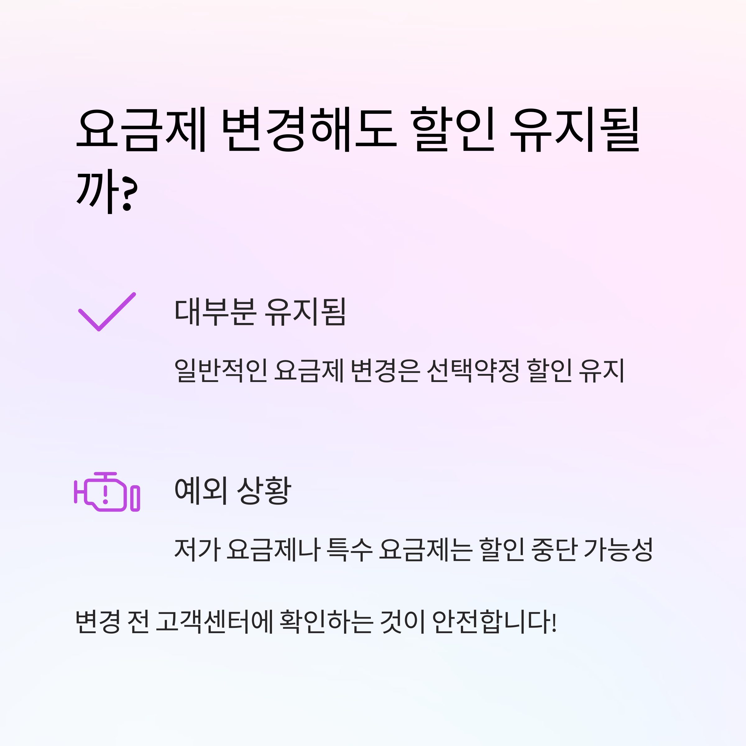 할인이 중단될 수 있으므로 변경 전 고객센터 확인이 필요합니다.