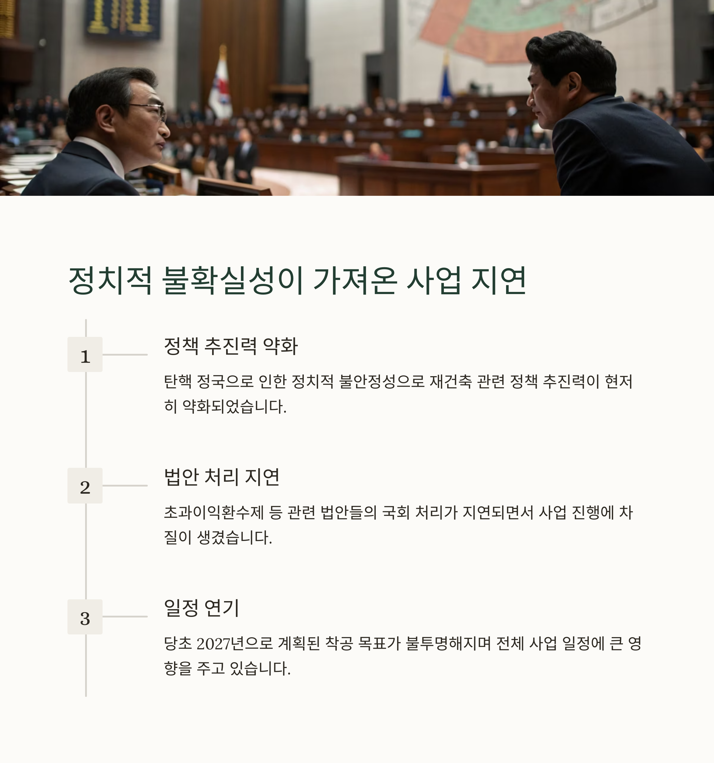 | 주요 원인 | 탄핵 정국, 경제적 요인, 주민 동의율 |