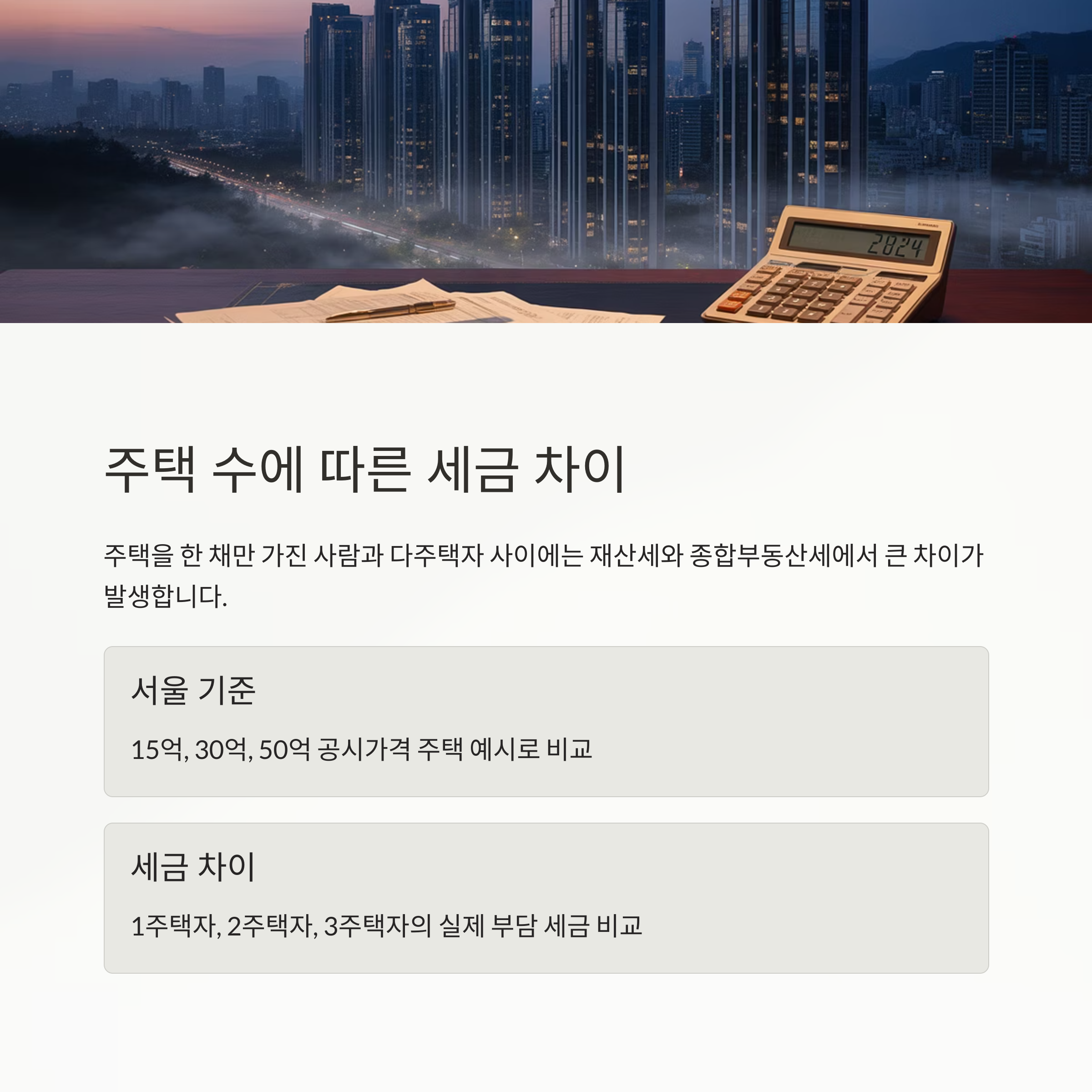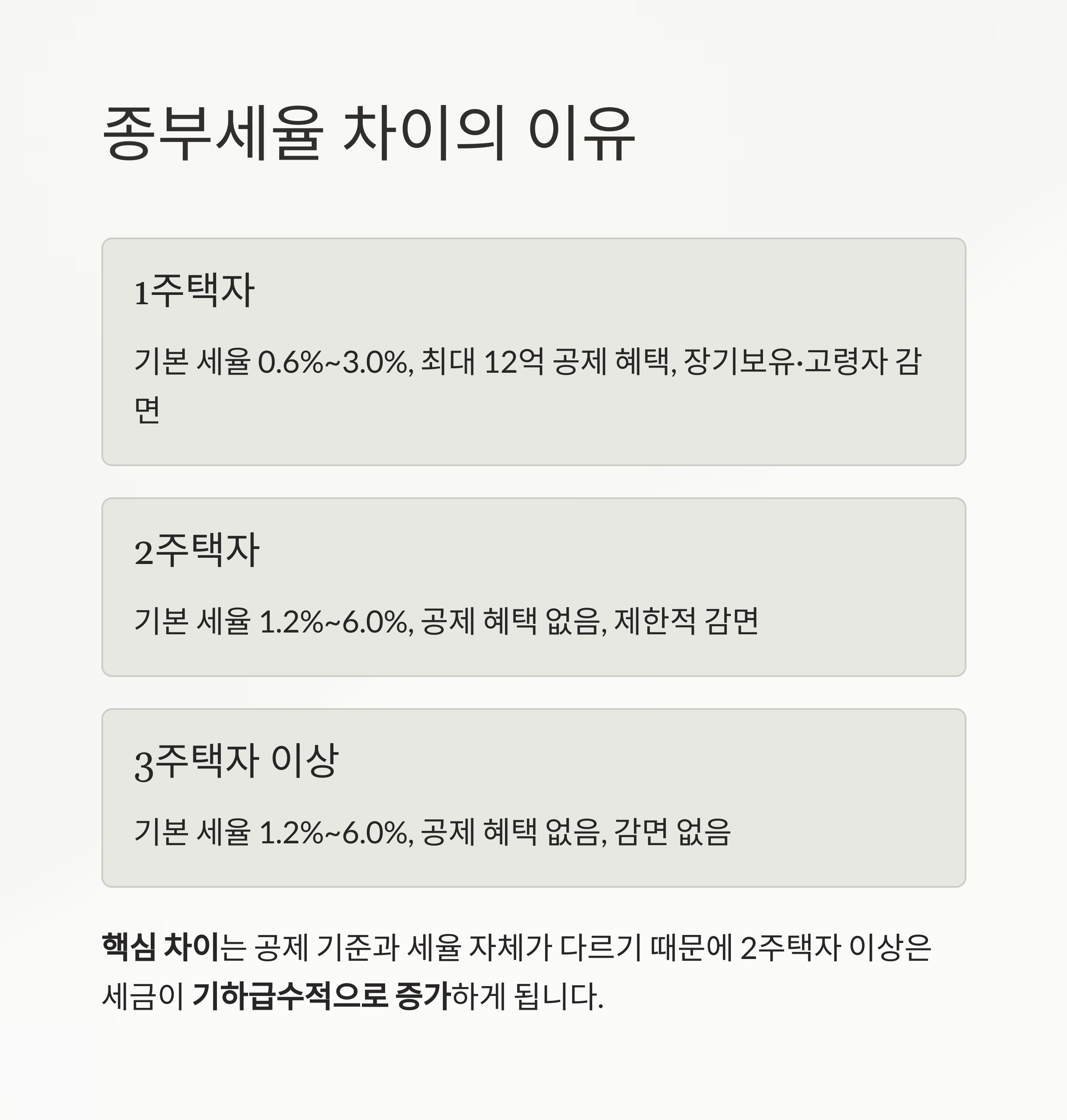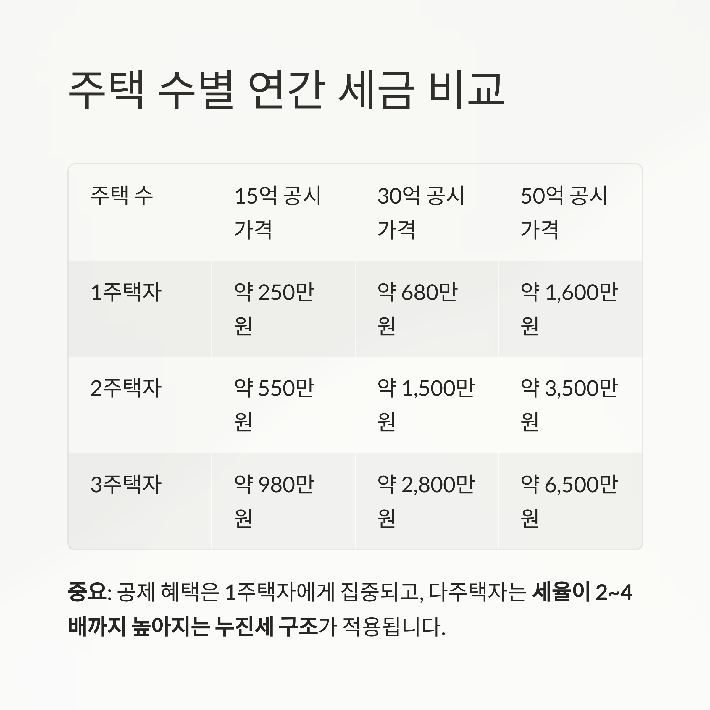 1주택자, 2주택자, 3주택자가 실제 부담하는 세금 차이를 구체적으로 비교해드립니다