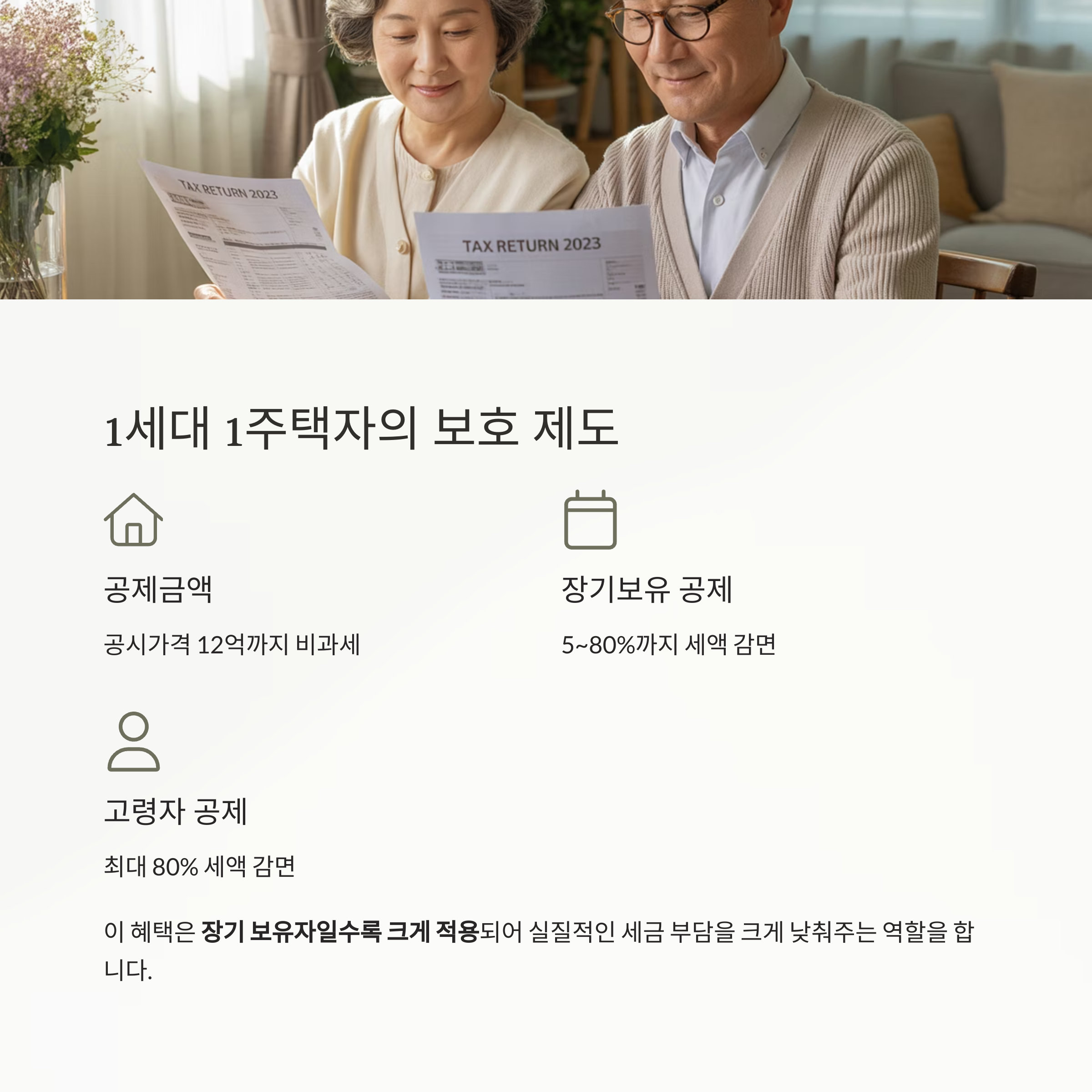 | 감면 혜택 | 장기보유·고령자 | 제한적 | 없음 |