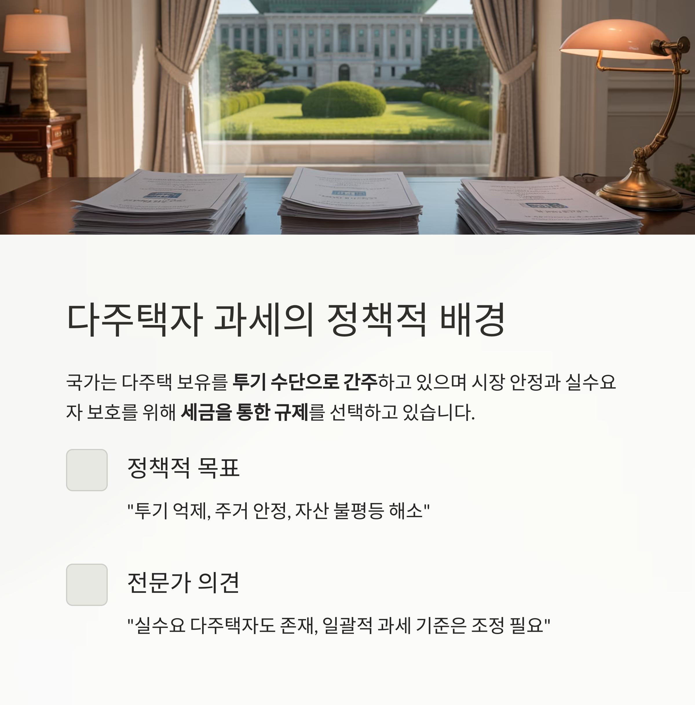 국가는 다주택 보유를 투기 수단으로 간주하고 있으며