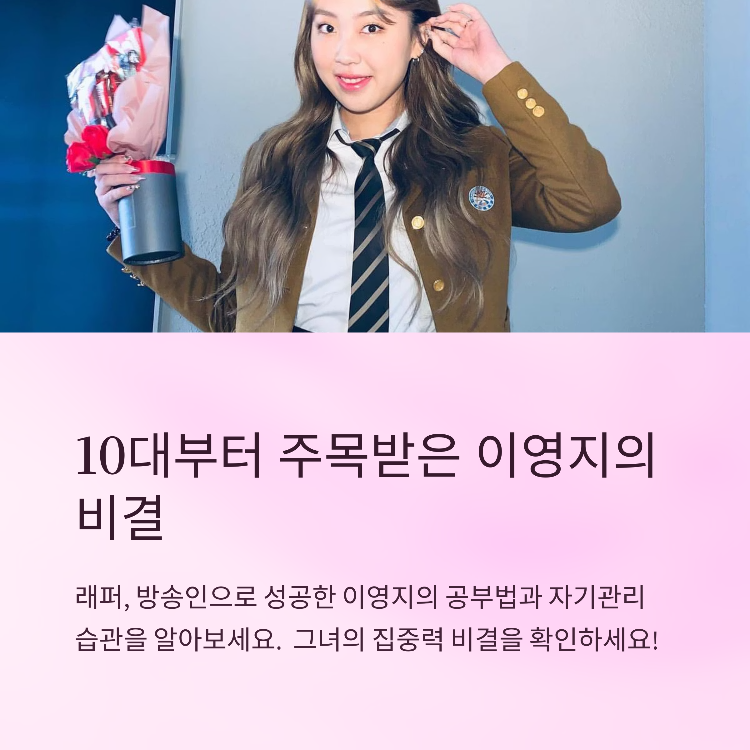 이영지는 고등학교 시절부터 자기만의 루틴과 공부법을 바탕으로