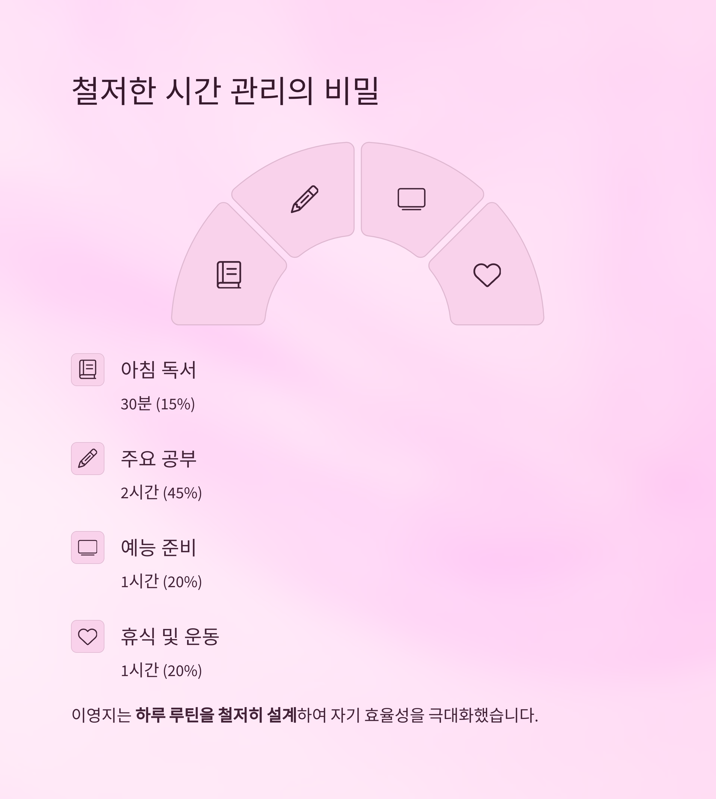 이영지는 학업과 방송 활동을 병행할 때도 하루 루틴을 철저히 설계했습니다