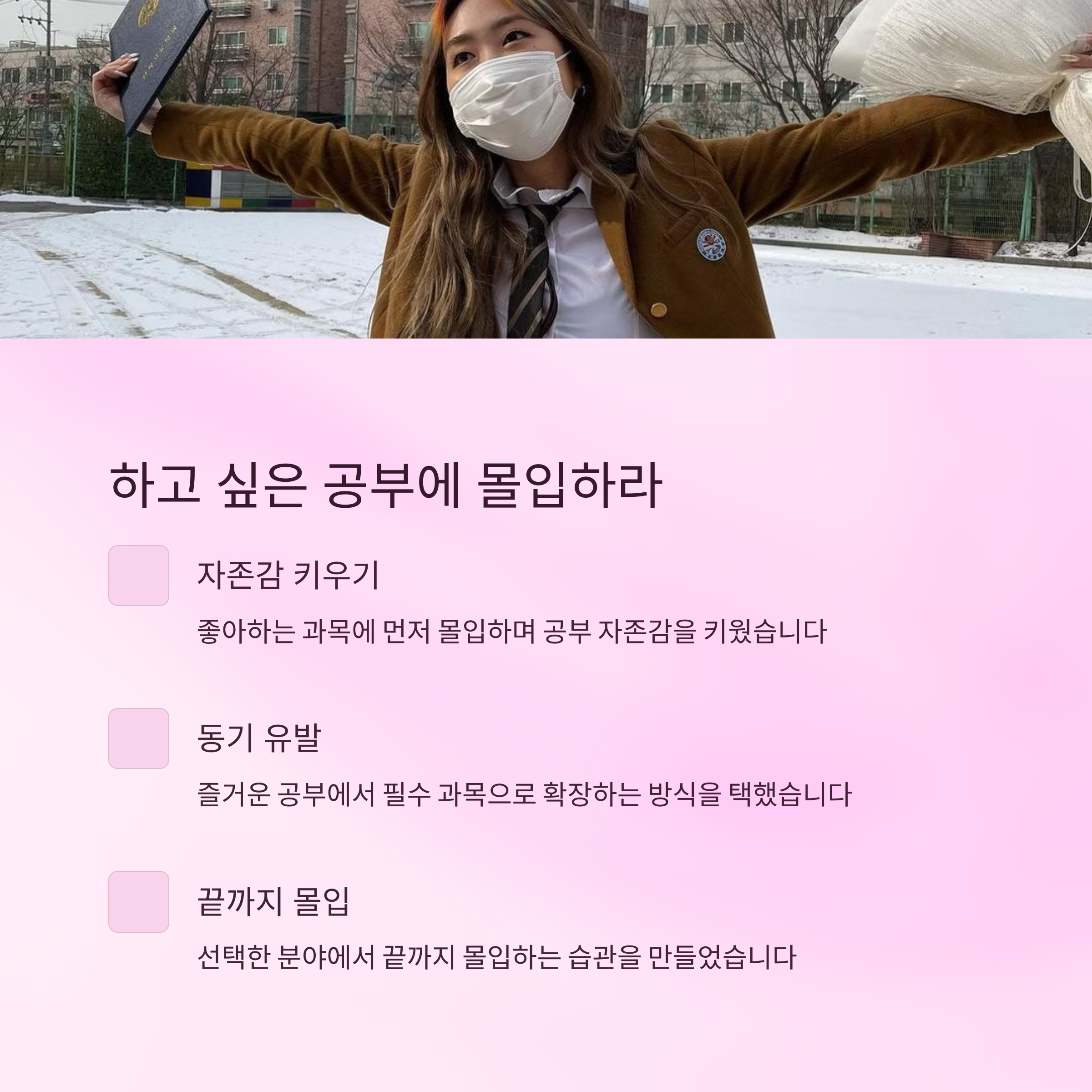 자신이 좋아하는 과목에 먼저 몰입하면서 공부에 대한 자존감을 키웠고,