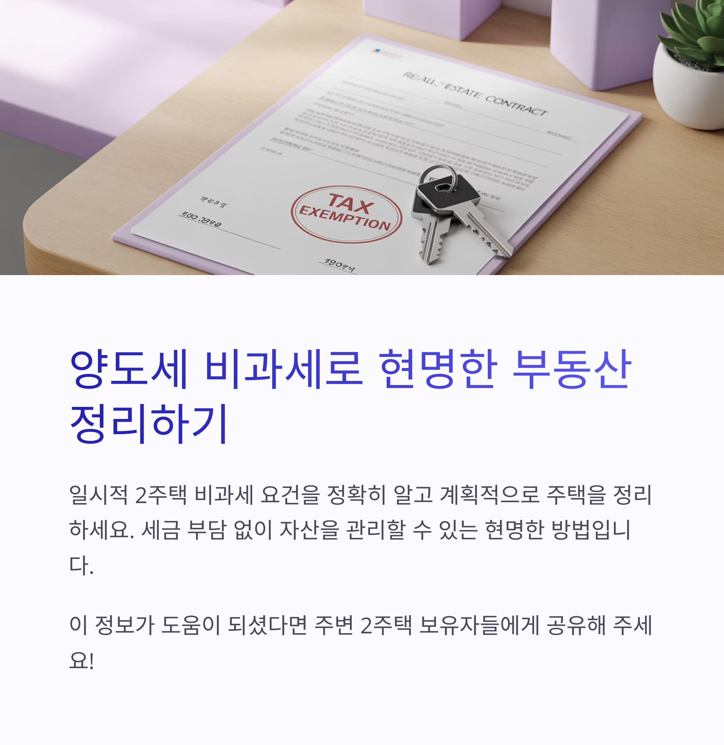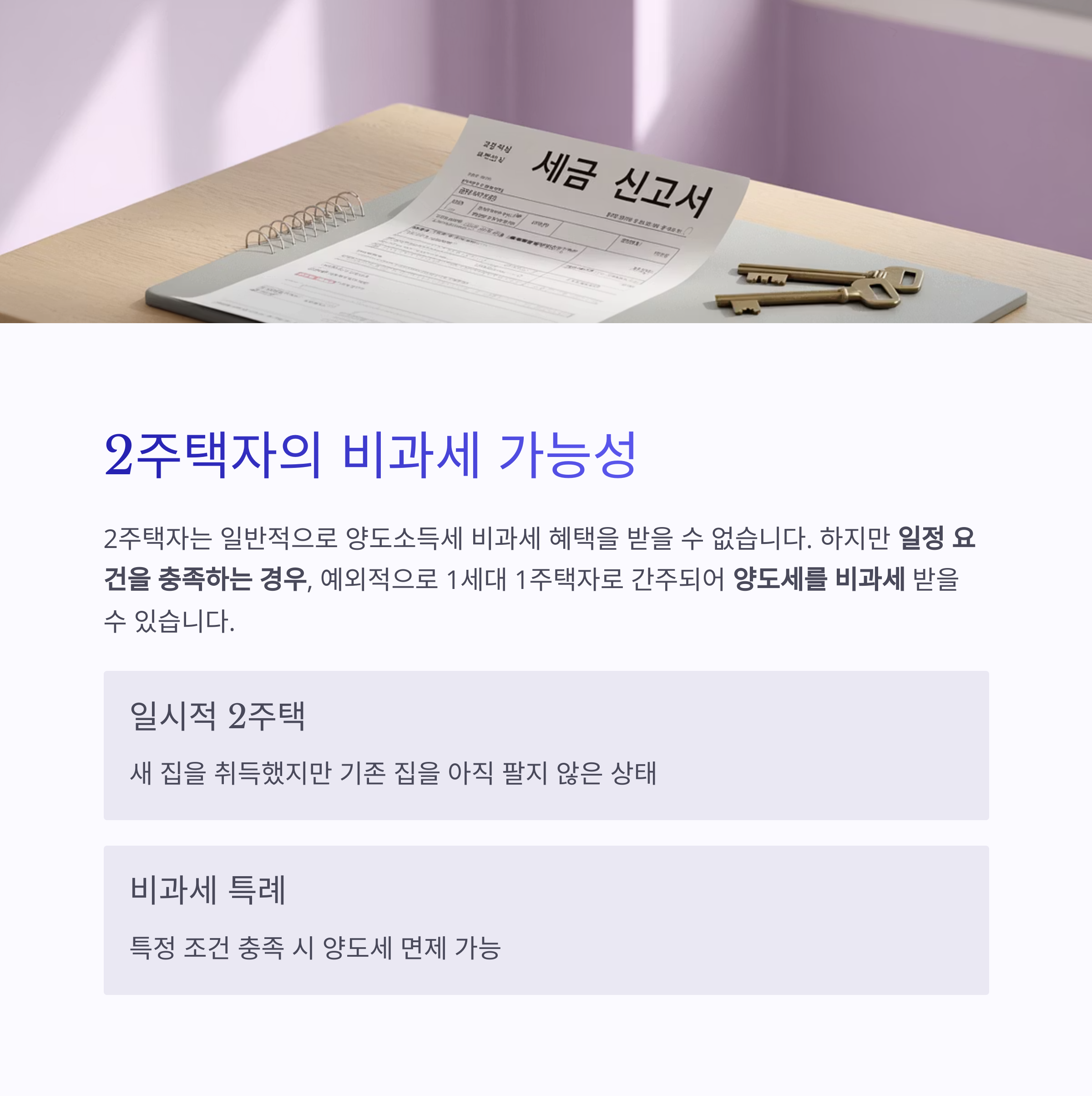 이 기준만 충족된다면, 2주택자라도 세금 부담 없이 주택을 정리할 수 있습니다.