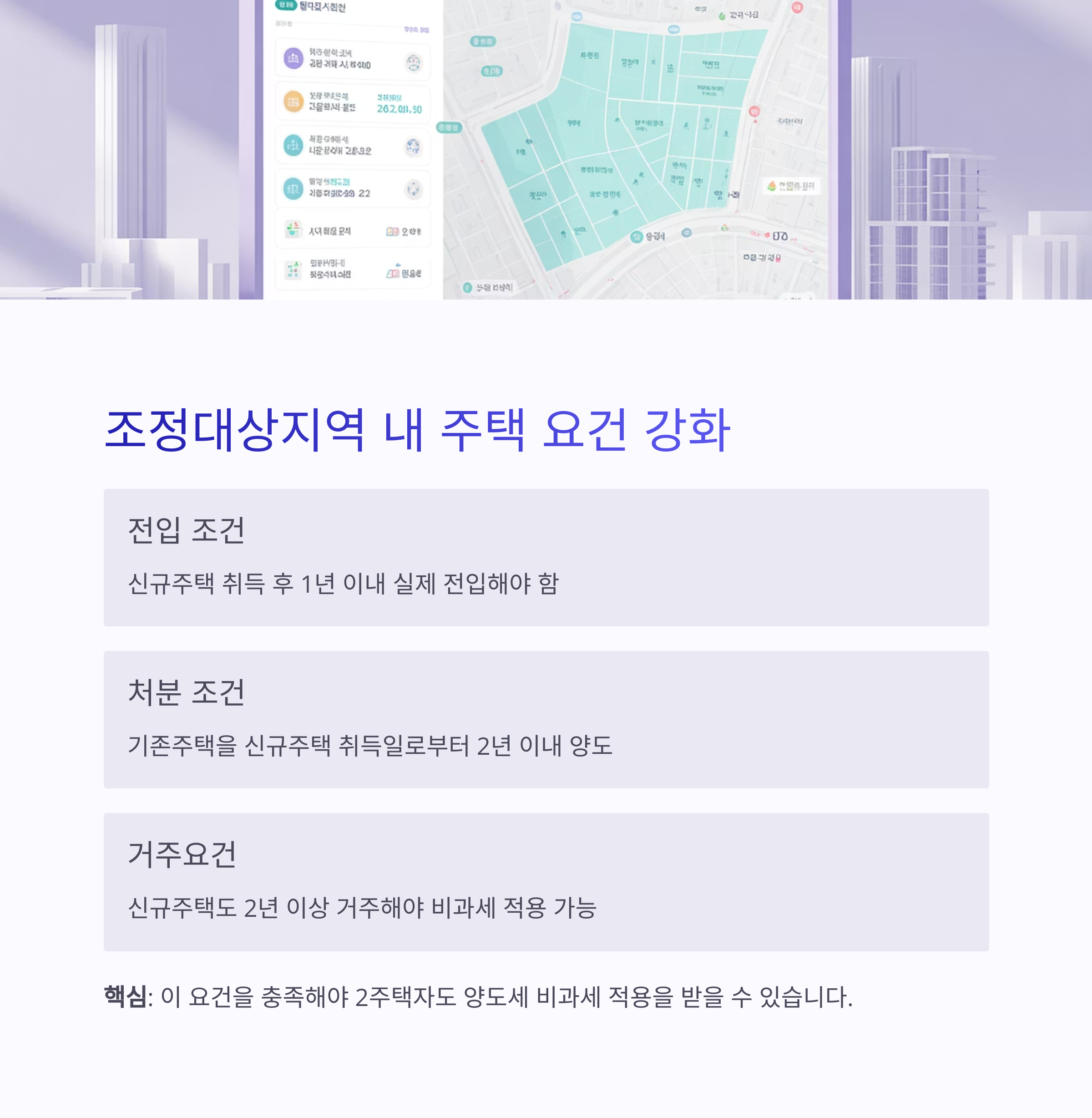| 거주요건 | 신규주택도 2년 이상 거주해야 비과세 적용 가능 |