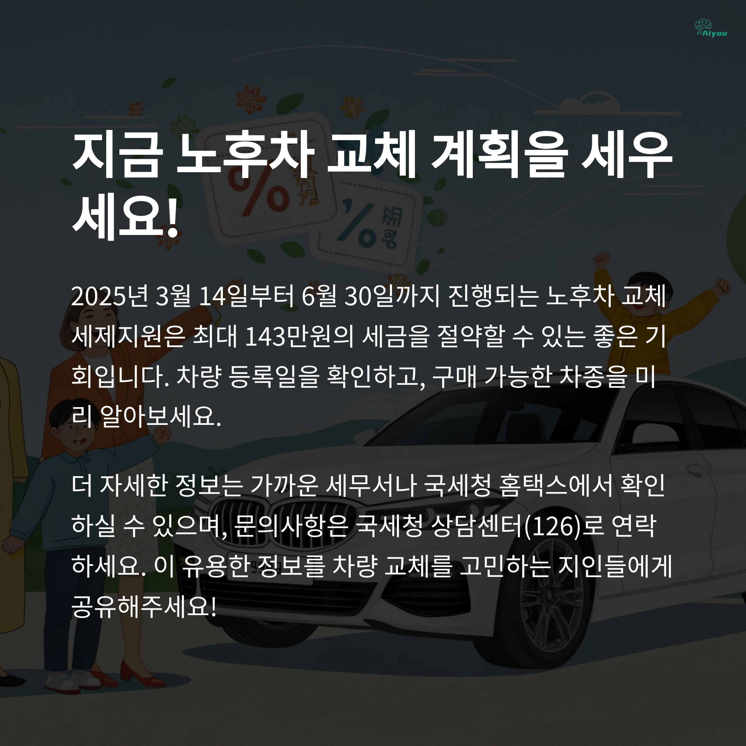 결론: 지금 바로 노후차 교체하고, 최대 143만 원 세금 아껴라!