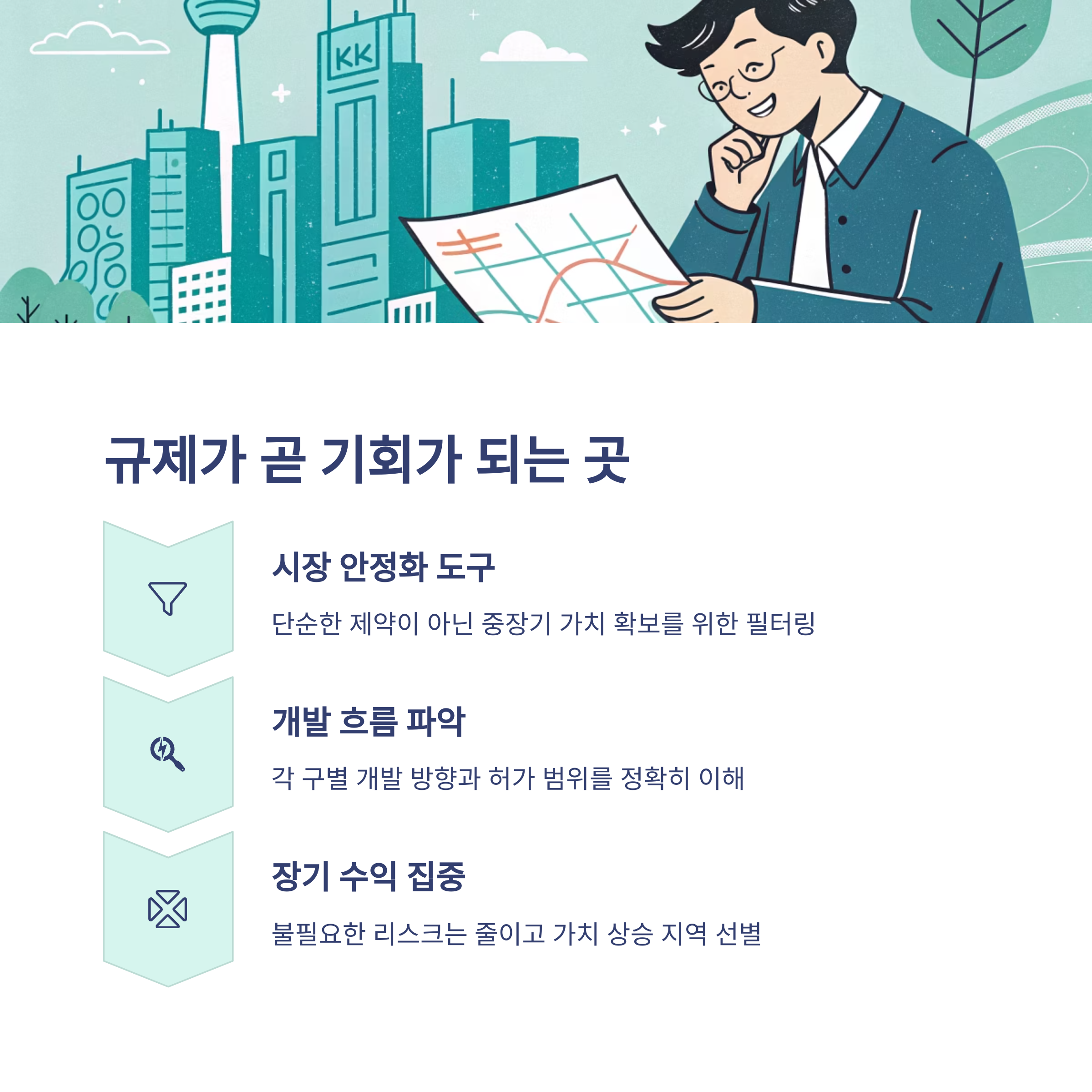 "규제 목적과 지역 개발 계획을 함께 고려해, 허가구역 안에서도 가치 있는 입지를 선별하는 것이 중요합니다."