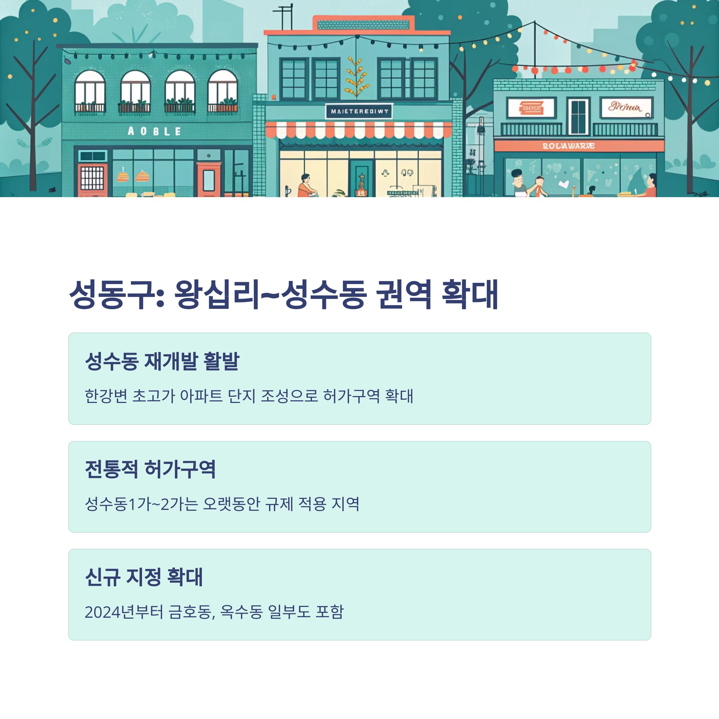 2024년부터는 금호동, 옥수동 일부도 신규 지정되어, 광범위한 규제가 적용되고 있습니다.
