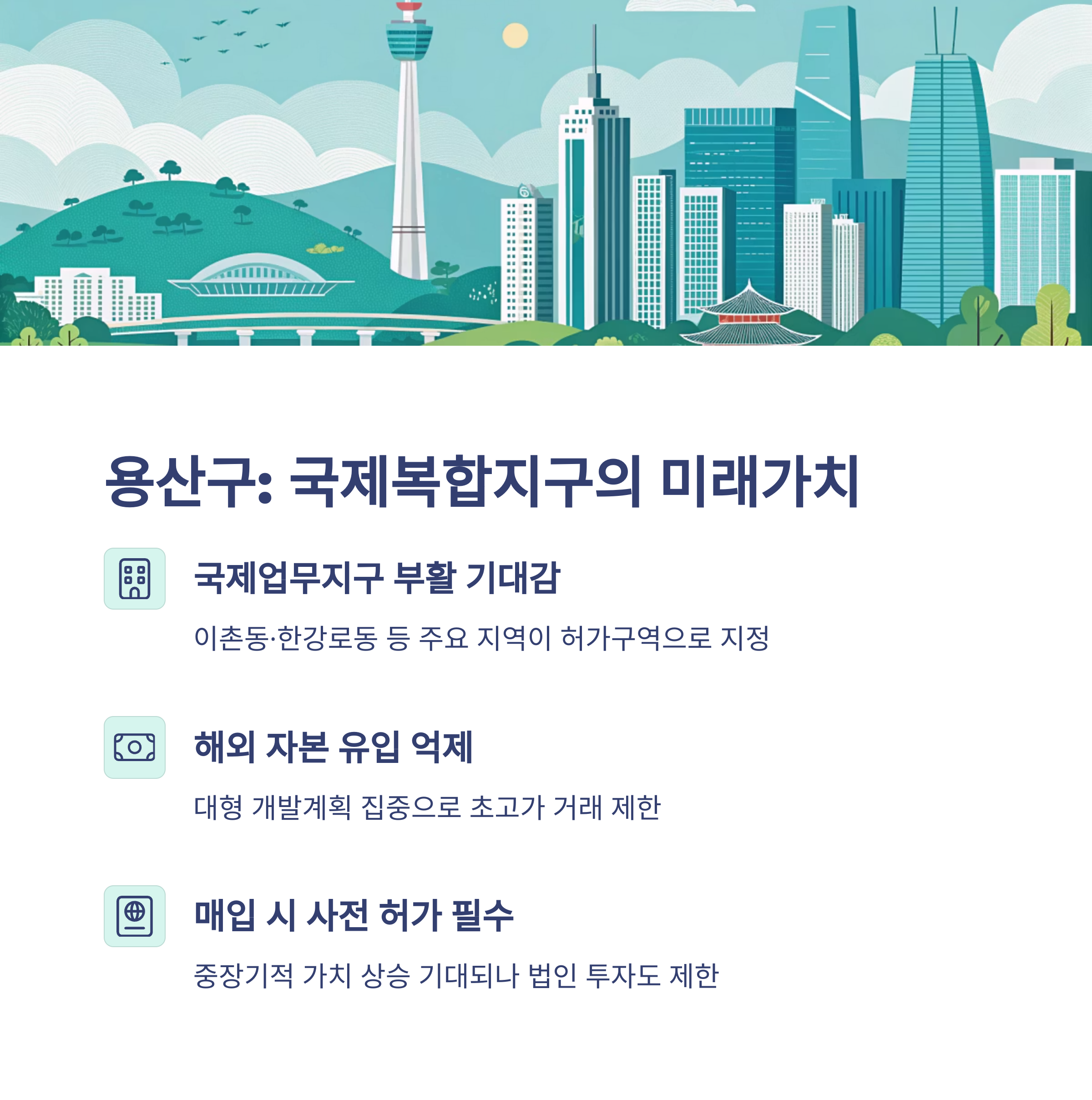 용산구는 국제업무지구 부활 기대감과 함께, 이촌동·한강로동 등 주요 지역이 허가구역으로 묶였습니다.
