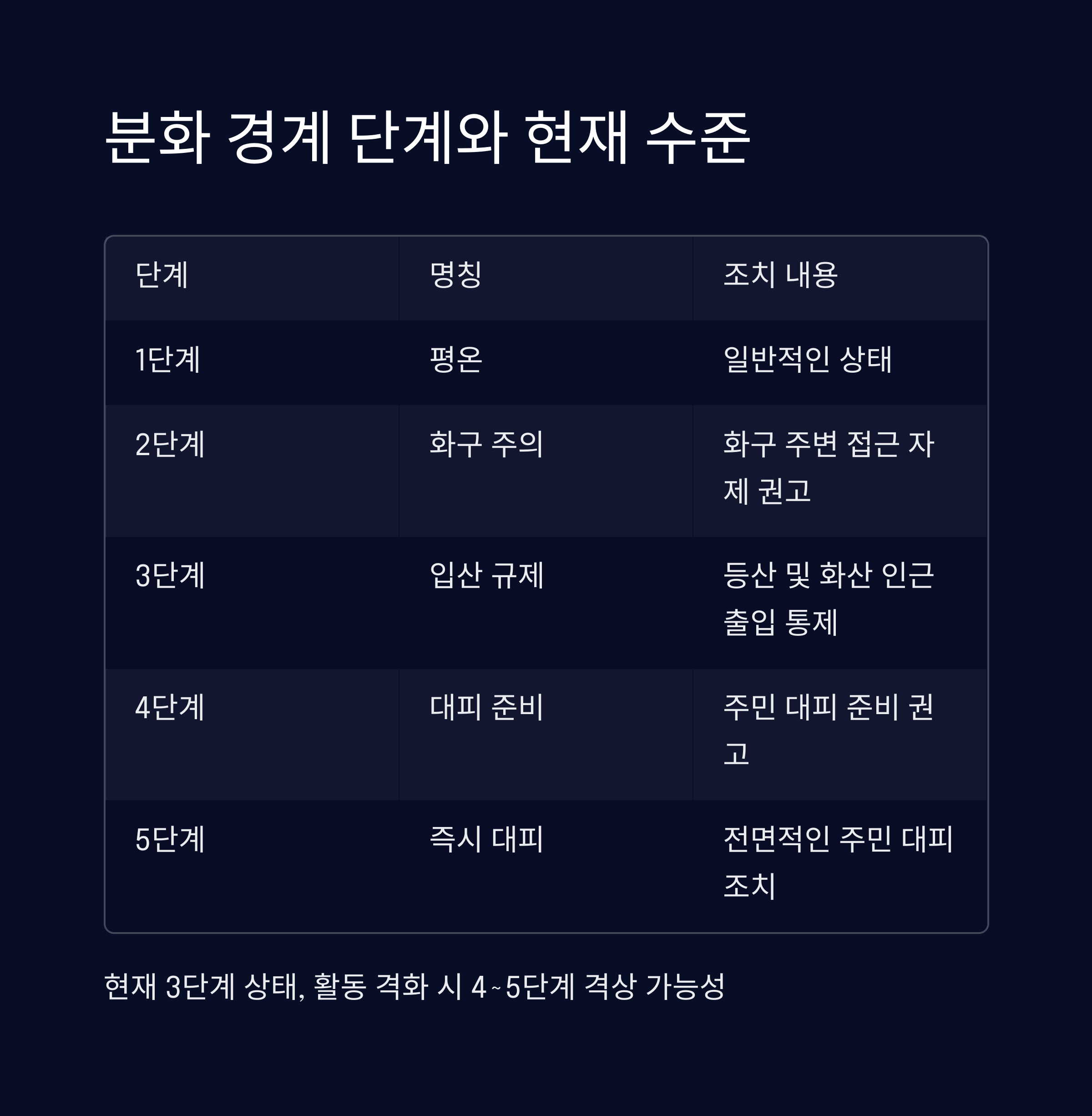| 3단계 | 입산 규제 | 등산 및 화산 인근 출입 통제 |