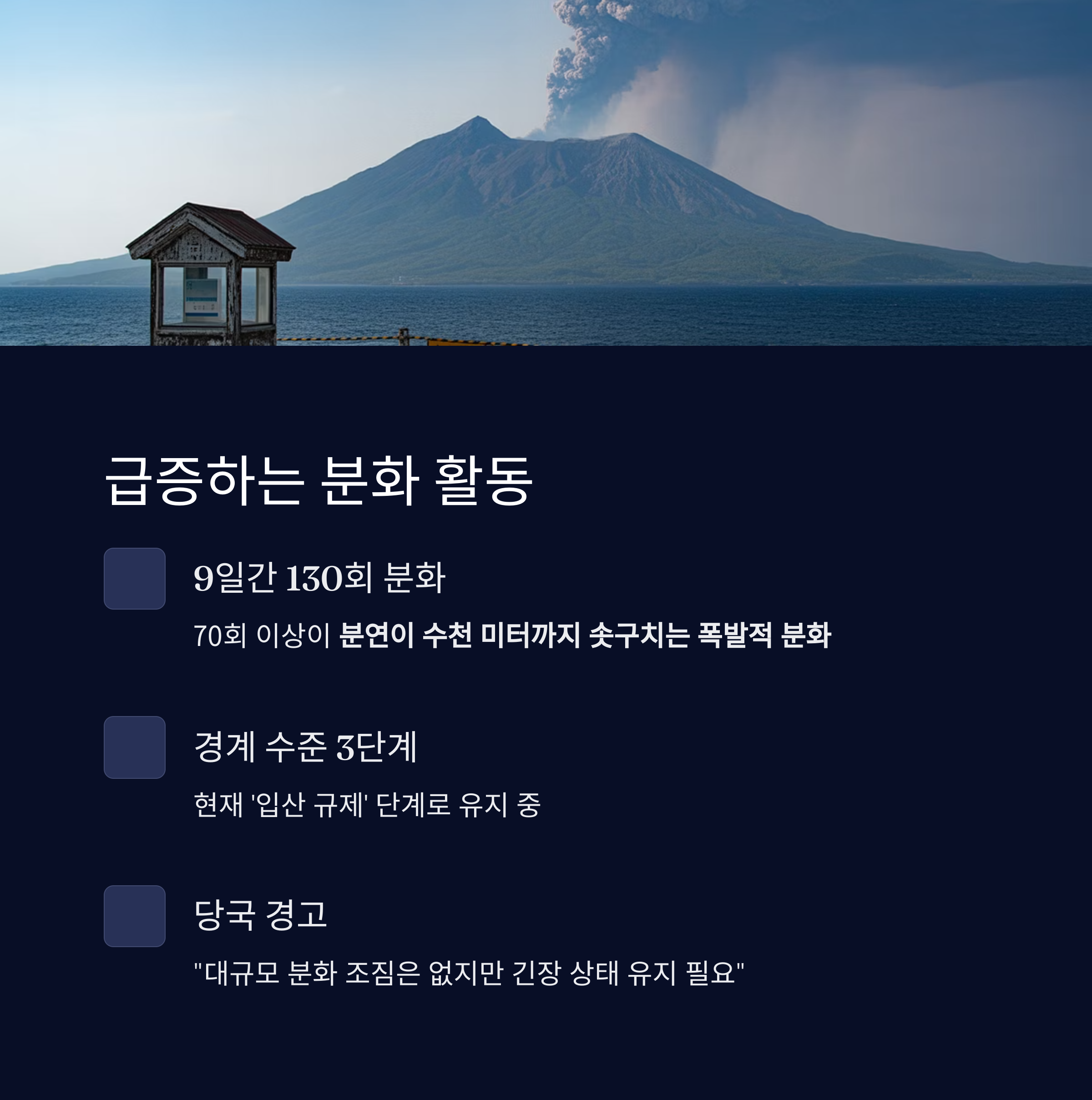 사쿠라지마 화산은 2025년 들어 이미 130회를 넘는 분화를 기록해