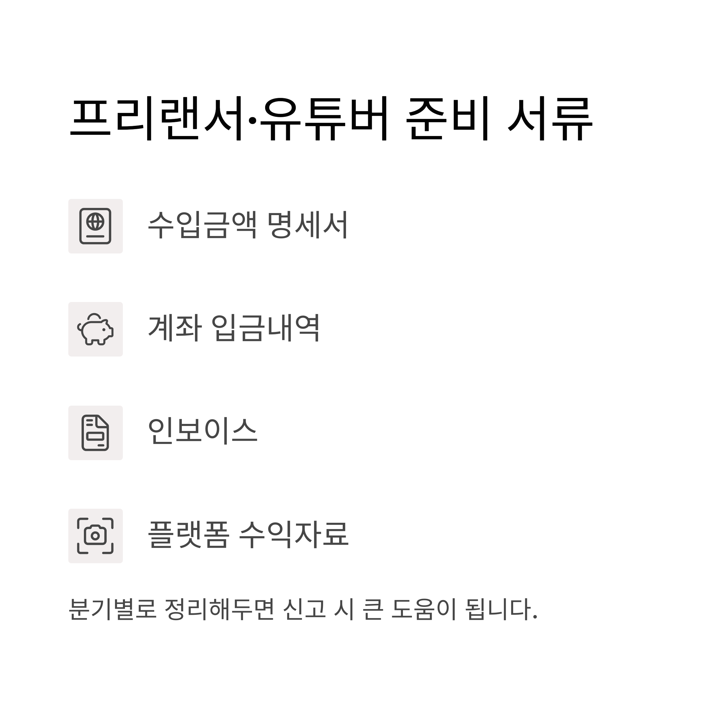 프리랜서나 유튜버는 수입에 대한 근거자료 확보가 특히 중요합니다.