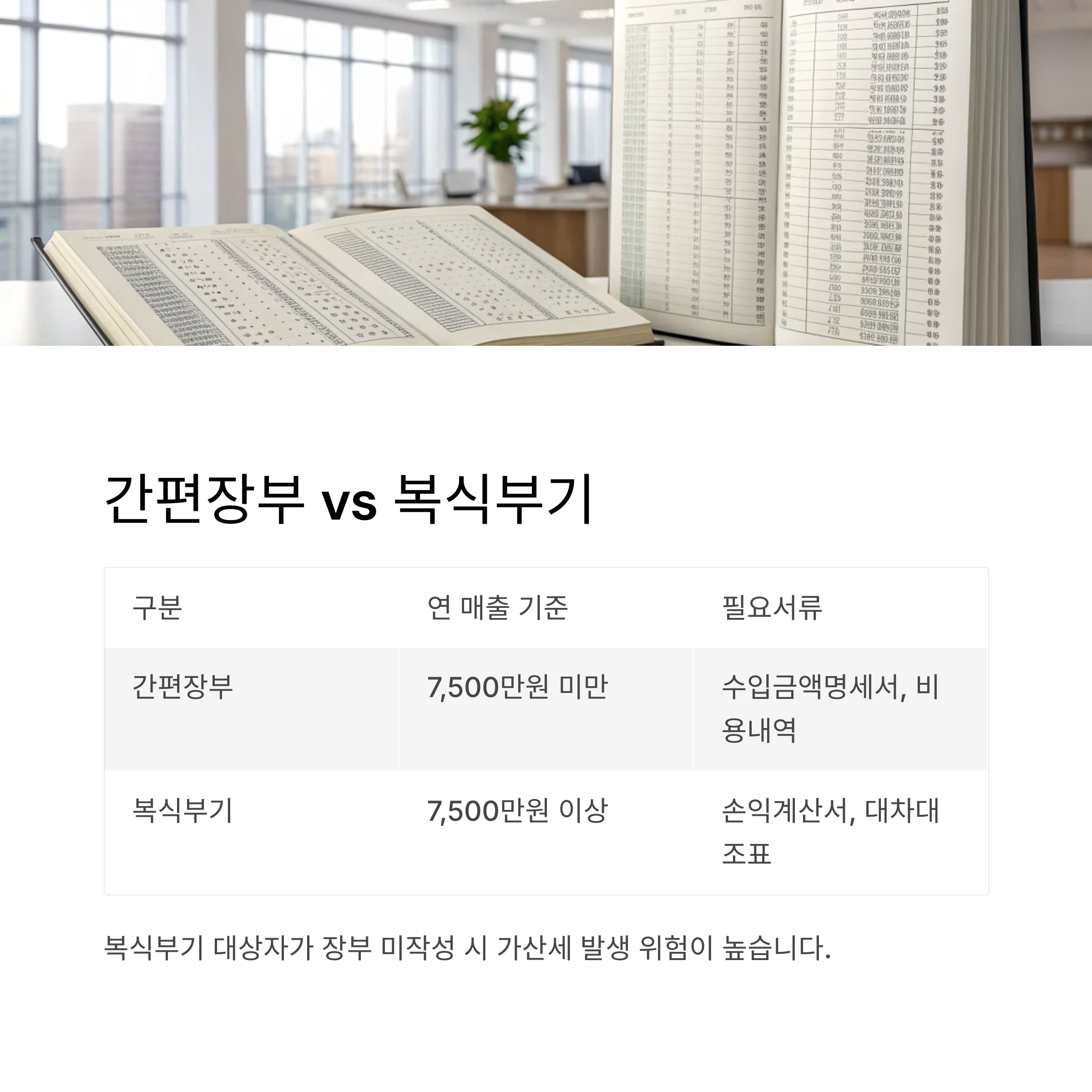 중요: 복식부기 대상자가 장부 미작성 시 가산세 발생 위험이 높습니다.