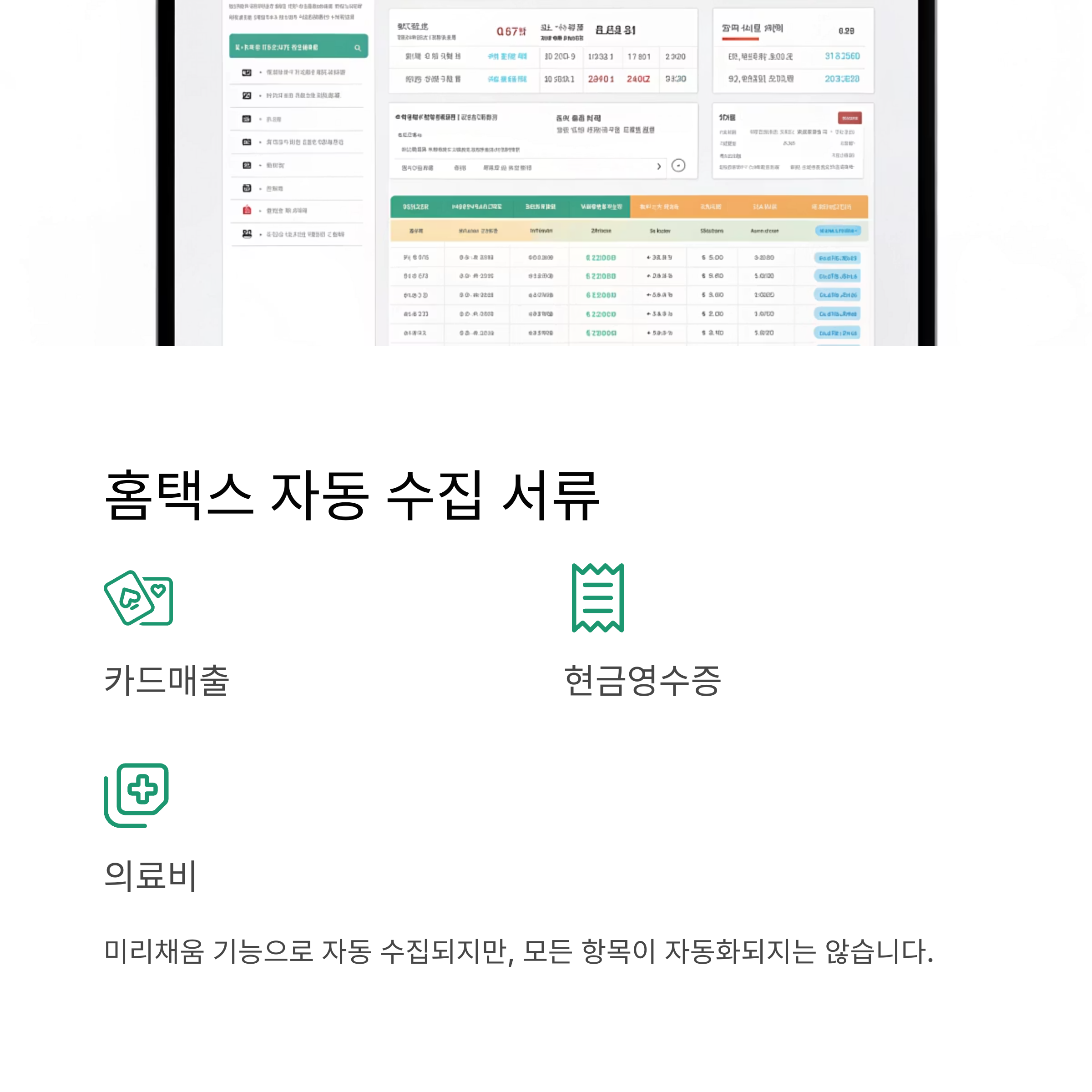 예를 들어 카드매출, 현금영수증, 보험료, 의료비 등은 미리채움 기능을 통해 자동으로 불러올 수 있어 편리합니다.