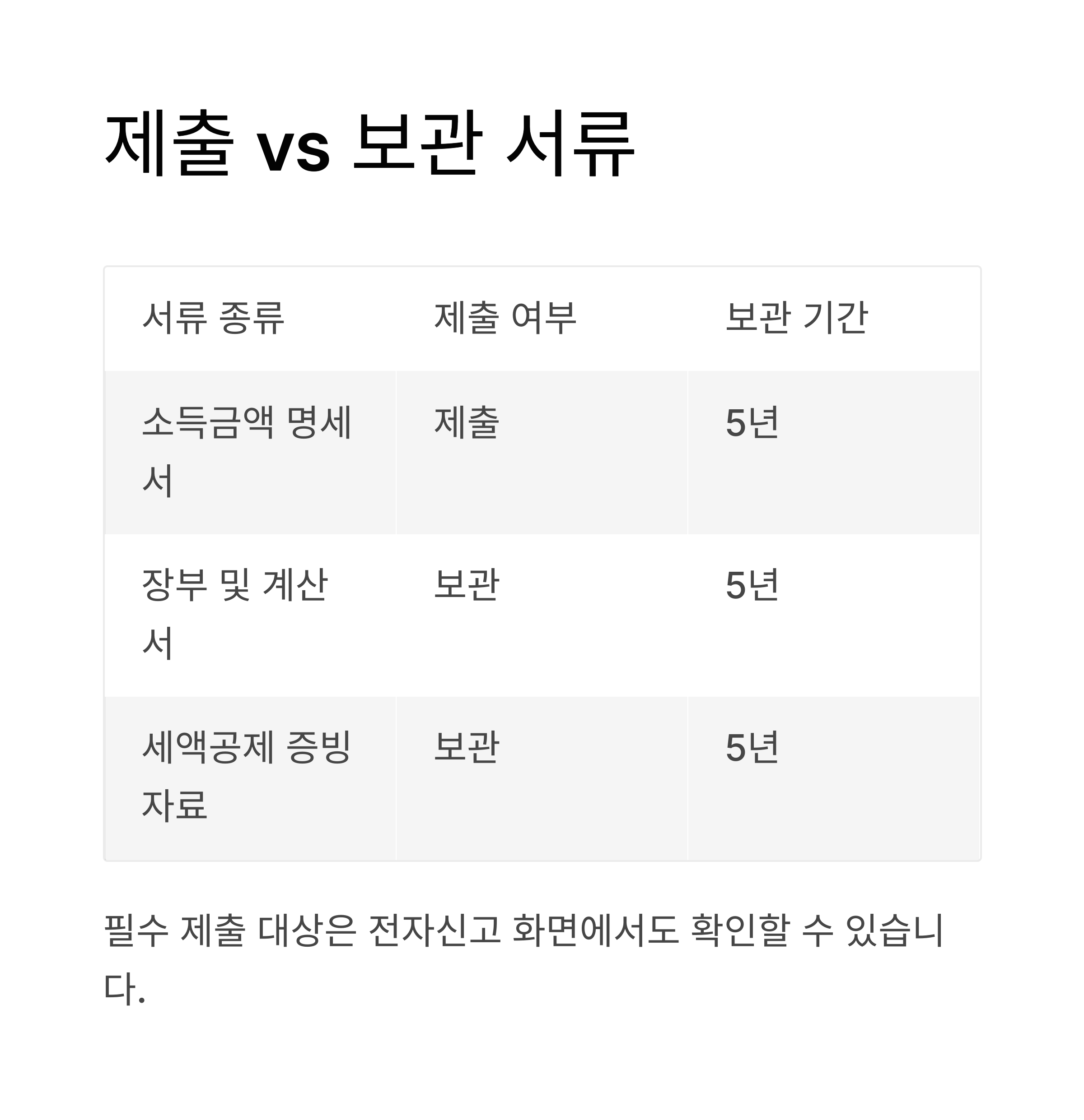 국세청에 제출해야 하는 서류 vs 보관만 하면 되는 서류