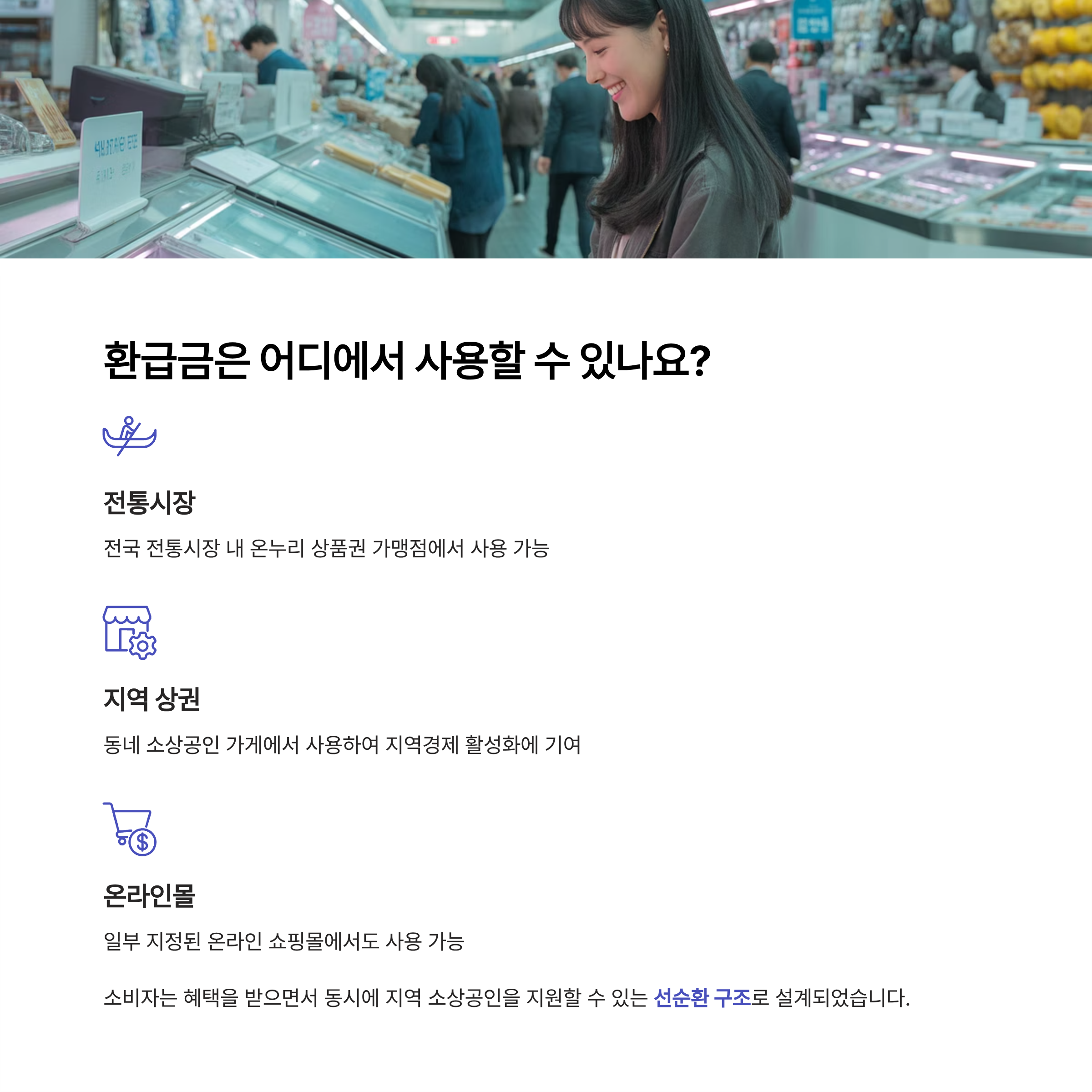 온누리 상품권 가맹점뿐만 아니라 전통시장, 지역 상권, 일부 온라인몰에서도 사용이 가능합니다. 특히 지역 소상공인에게 직접적인 도움이 되는 구조로 설계되어 있어 소비자가 혜택을 받으면서 동시에 지역경제 활성화에 기여할 수 있습니다.