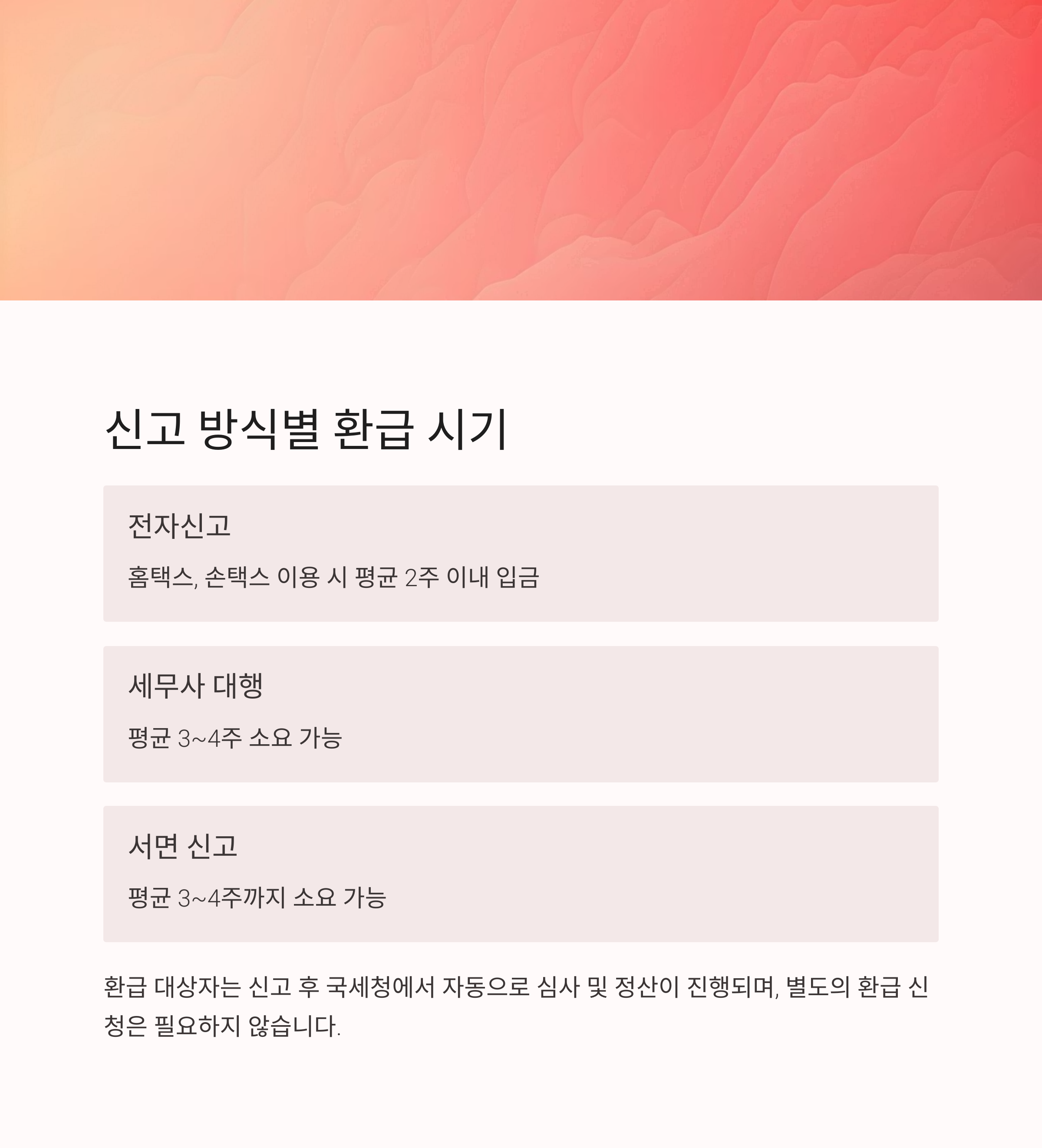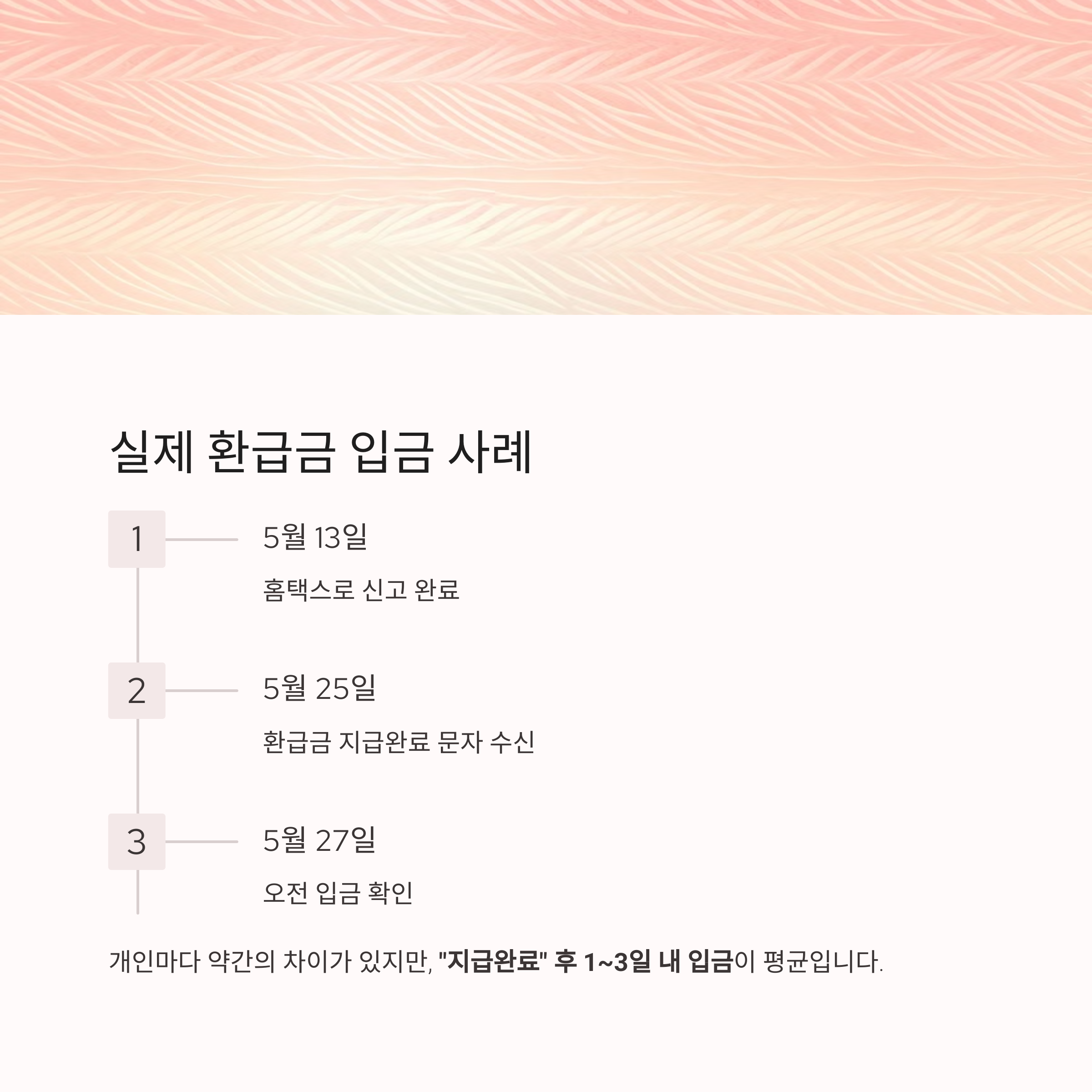 중요: 모든 환급은 국세청 심사를 통과한 후 순차 입금되며,