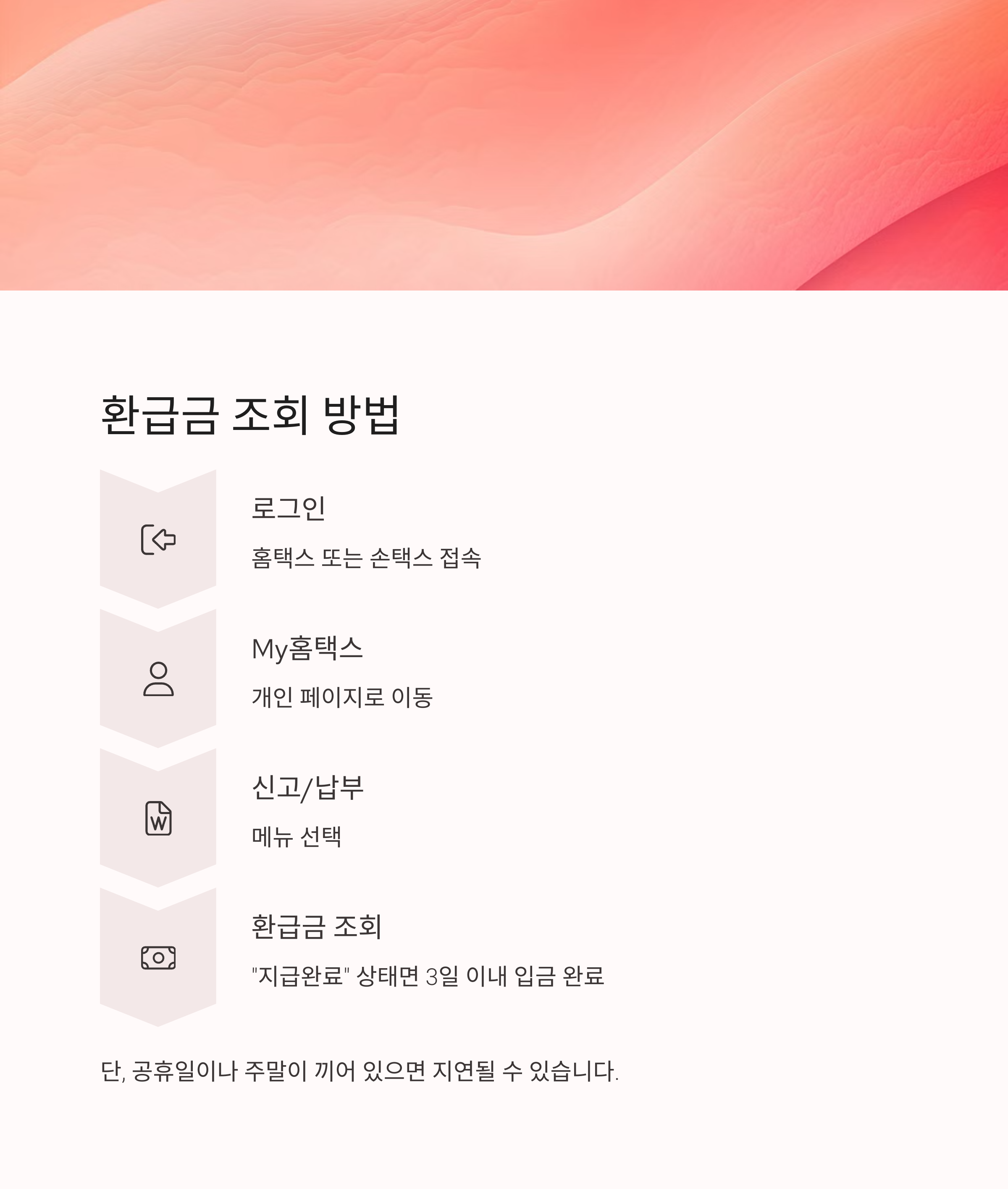 | 조회 방법 | 홈택스 → 환급금 조회 메뉴 |