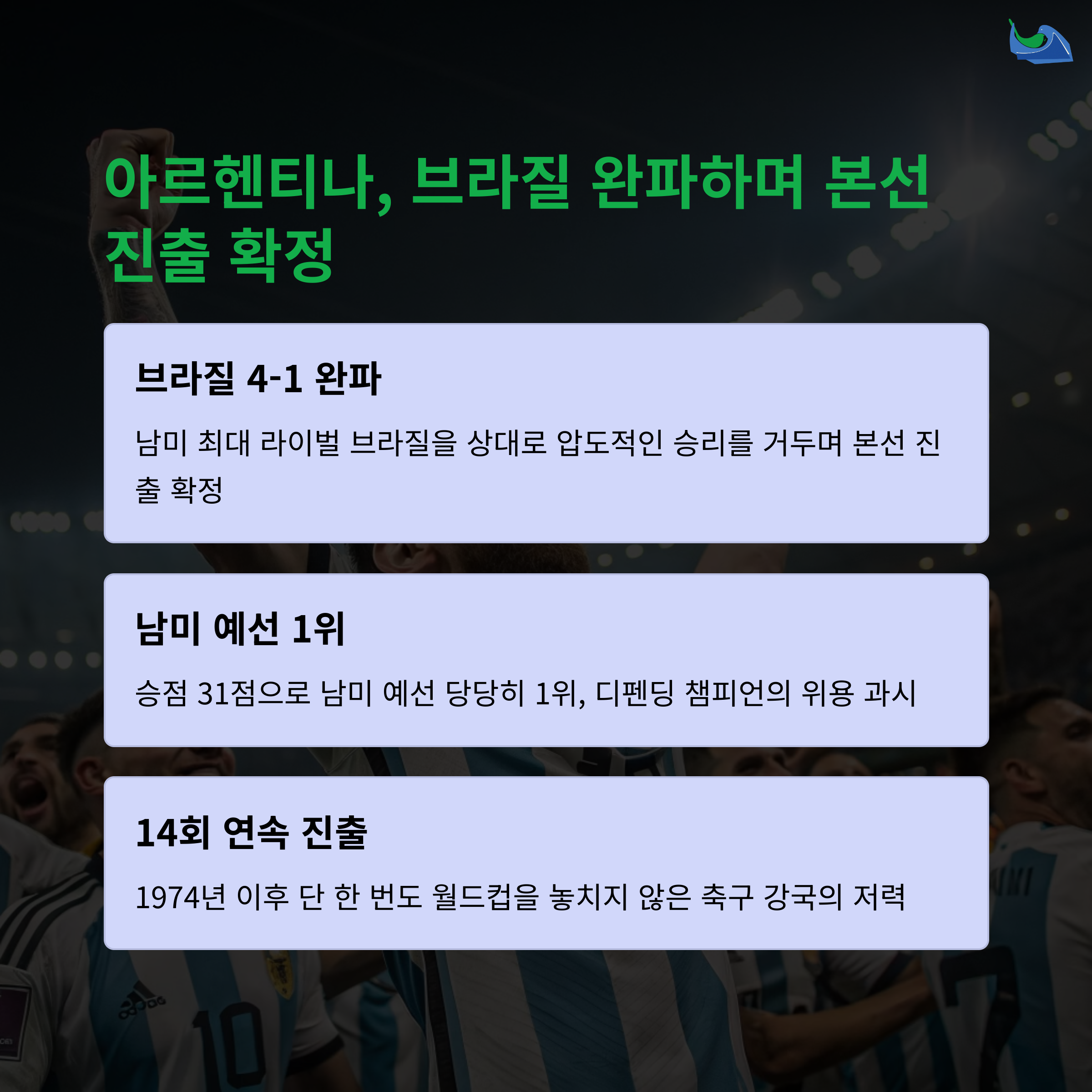 | 아르헨티나의 활약 | 브라질을 꺾고 14회 연속 본선 진출 |