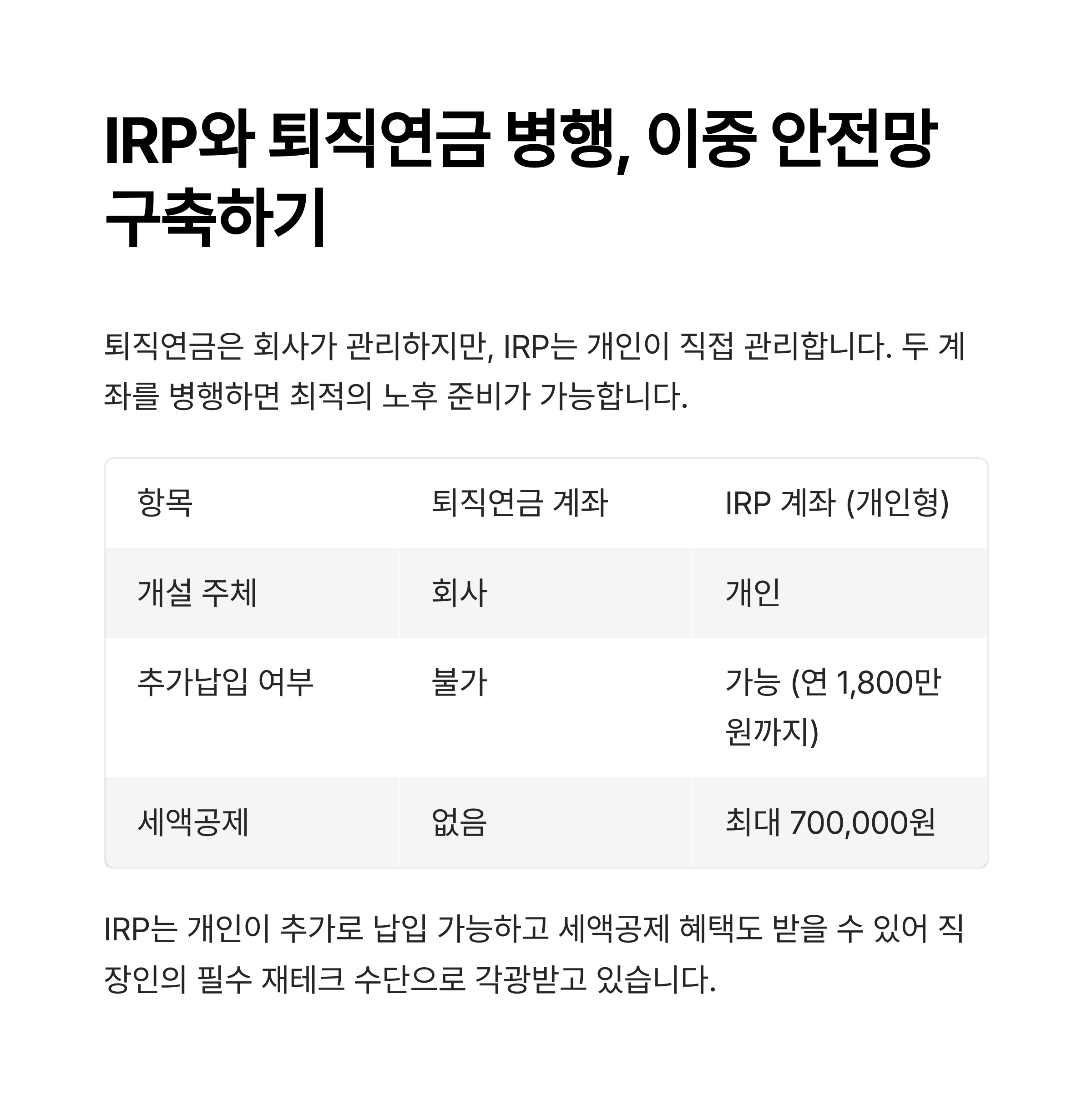 IRP 계좌와 퇴직연금 병행 전략, 이중 레이어 만들기