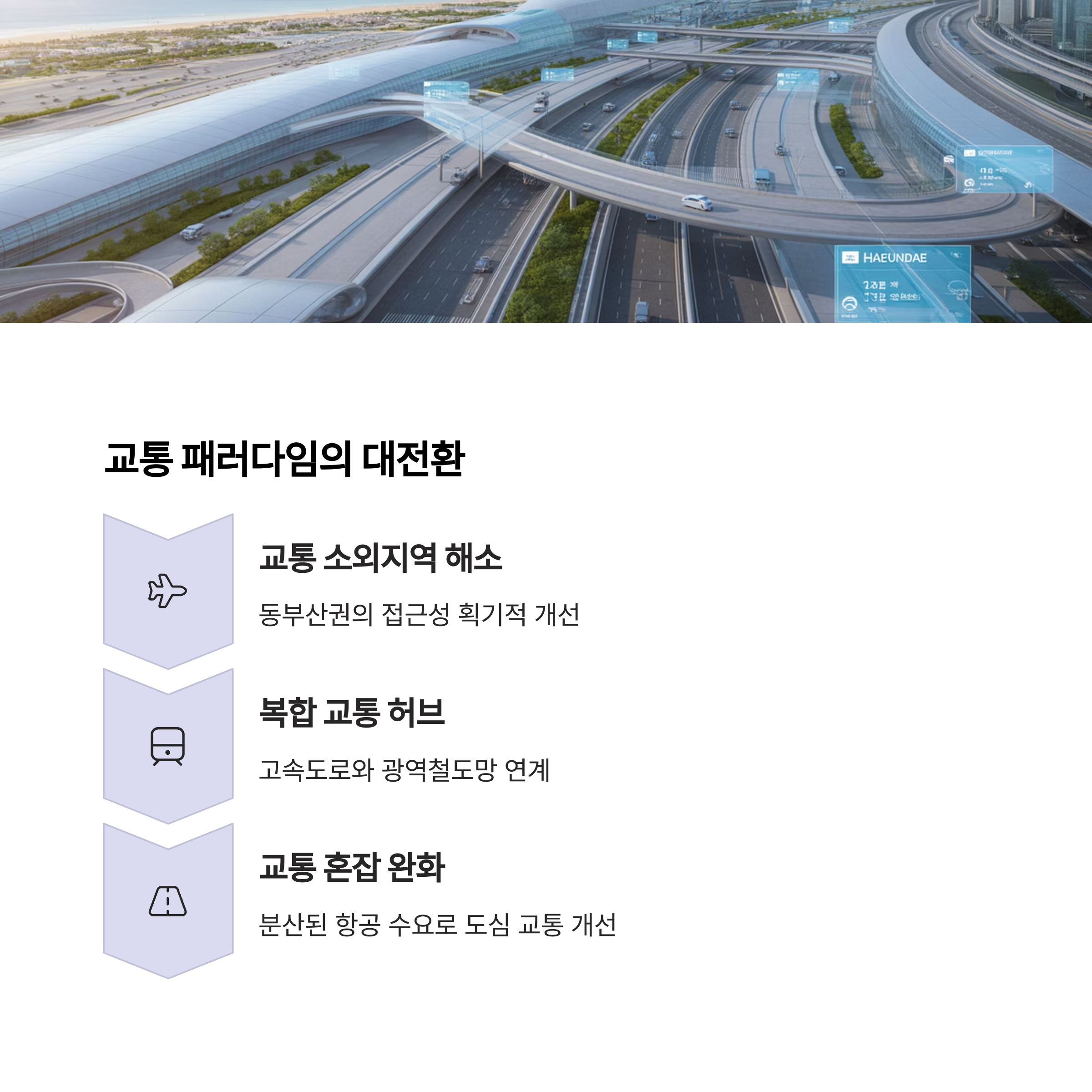 지금까지 김해공항 중심이던 공항 인프라가 동부산권까지 확장되며 해운대가 새로운 교통 중심지로 부상할 가능성이 높아지고 있습니다.