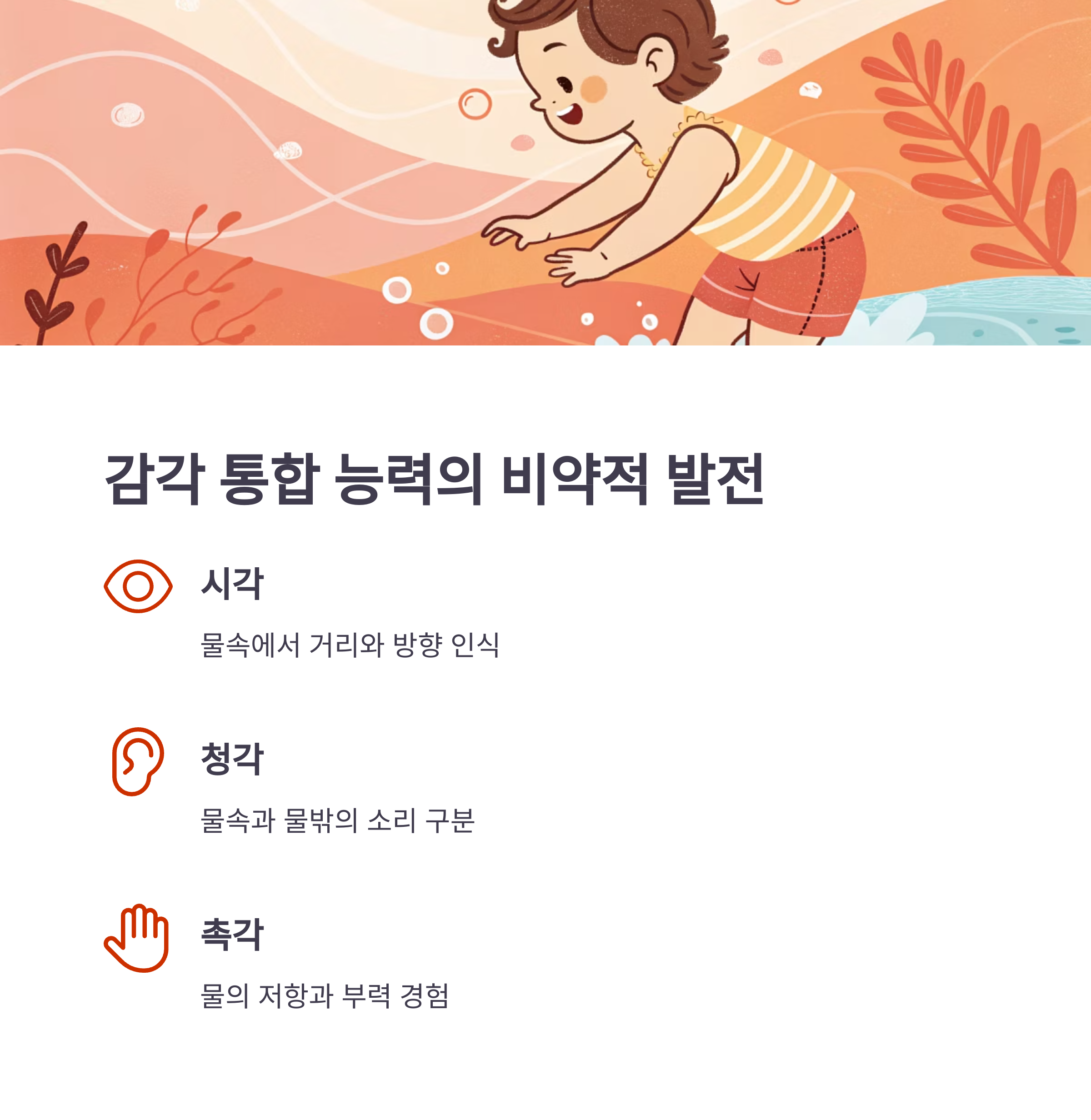 물속에서는 시각, 청각, 촉각, 균형 감각 등 다양한 감각이 동시에 자극됩니다.