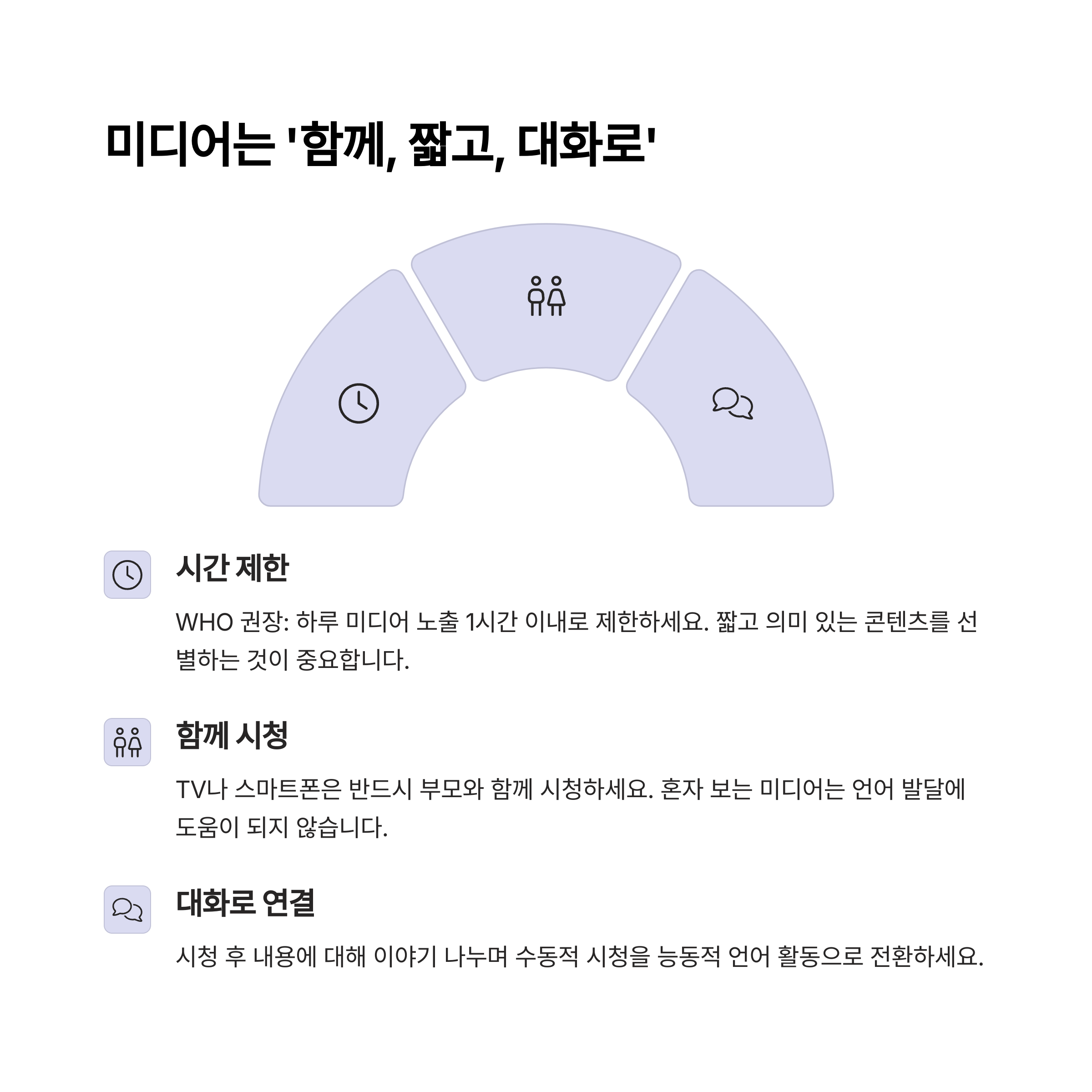 아이를 키우면서 TV나 유튜브의 유혹을 피하기란 정말 어려워요. 그런데 중요한 건 무조건 금지가 아니라 '어떻게 보여주느냐'거든요. 특히 언어 자극을 위한 미디어 시청은 시간, 내용, 함께 보는 방식이 핵심이에요.