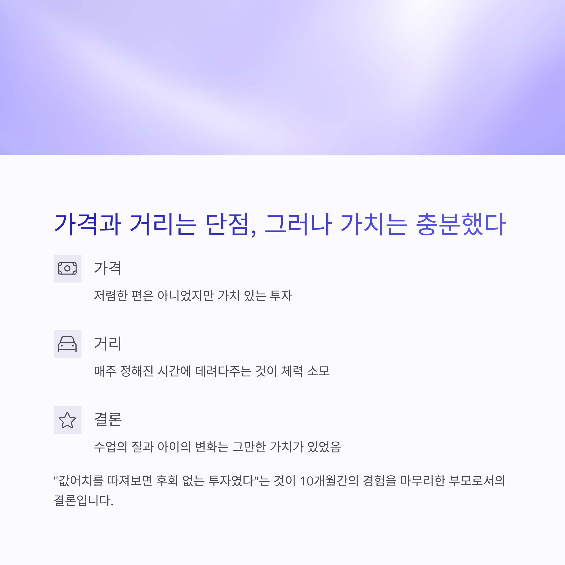 10개월간의 경험을 마무리한 부모로서의 결론입니다.