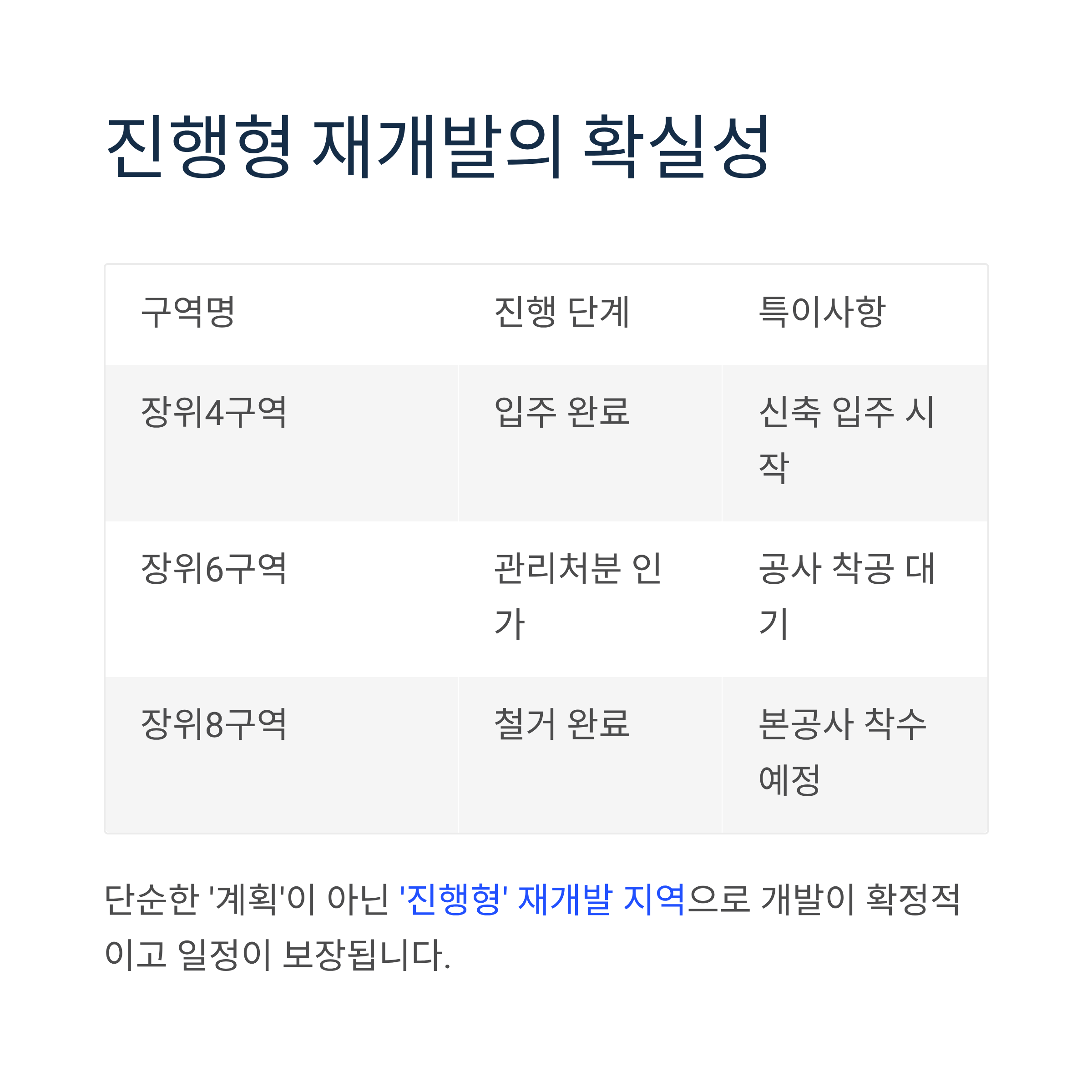 | 장위6구역 | 관리처분 인가 | 공사 착공 대기 |