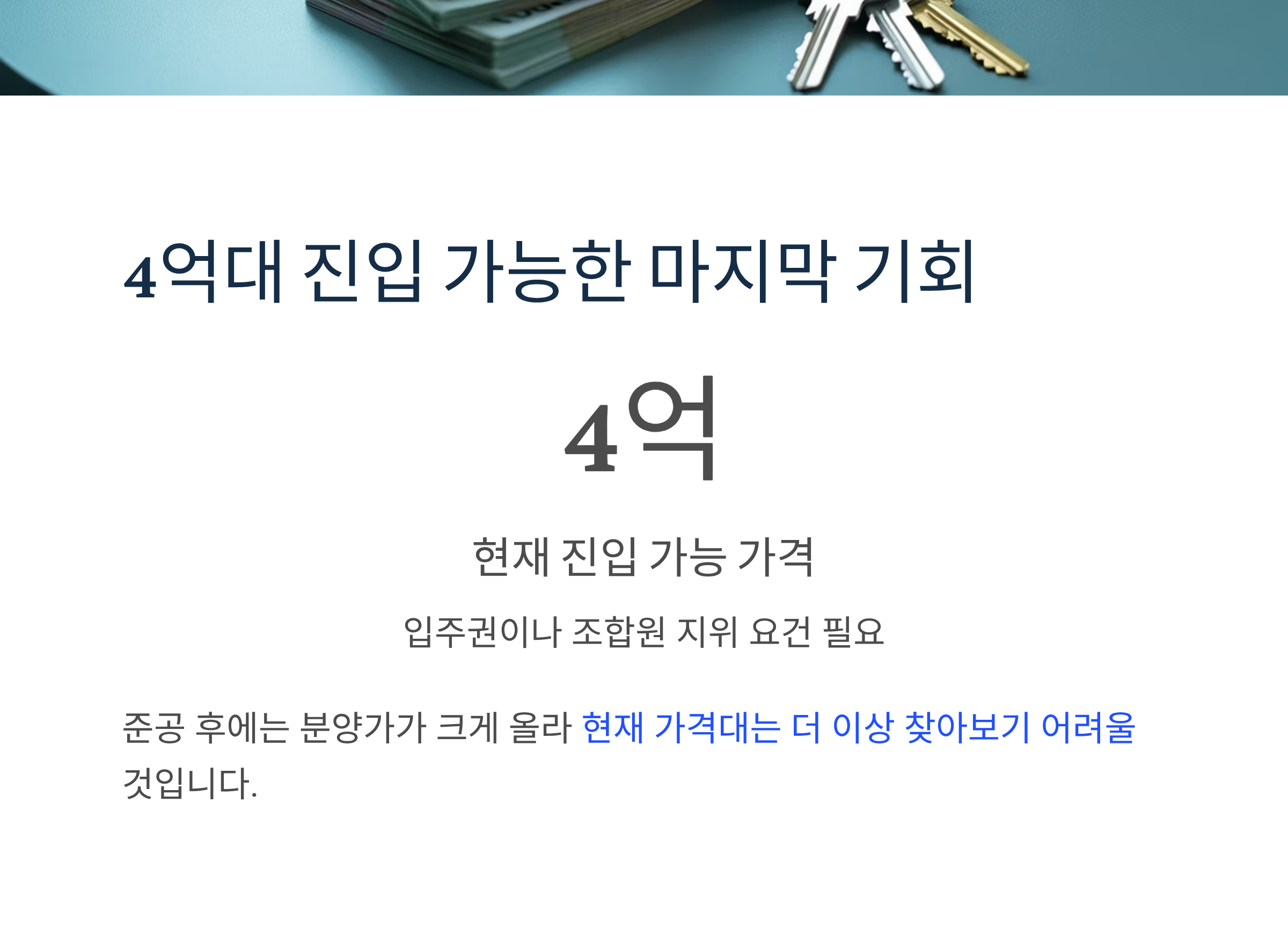 4억대 진입 가능, 소액 투자자에겐 마지막 기회