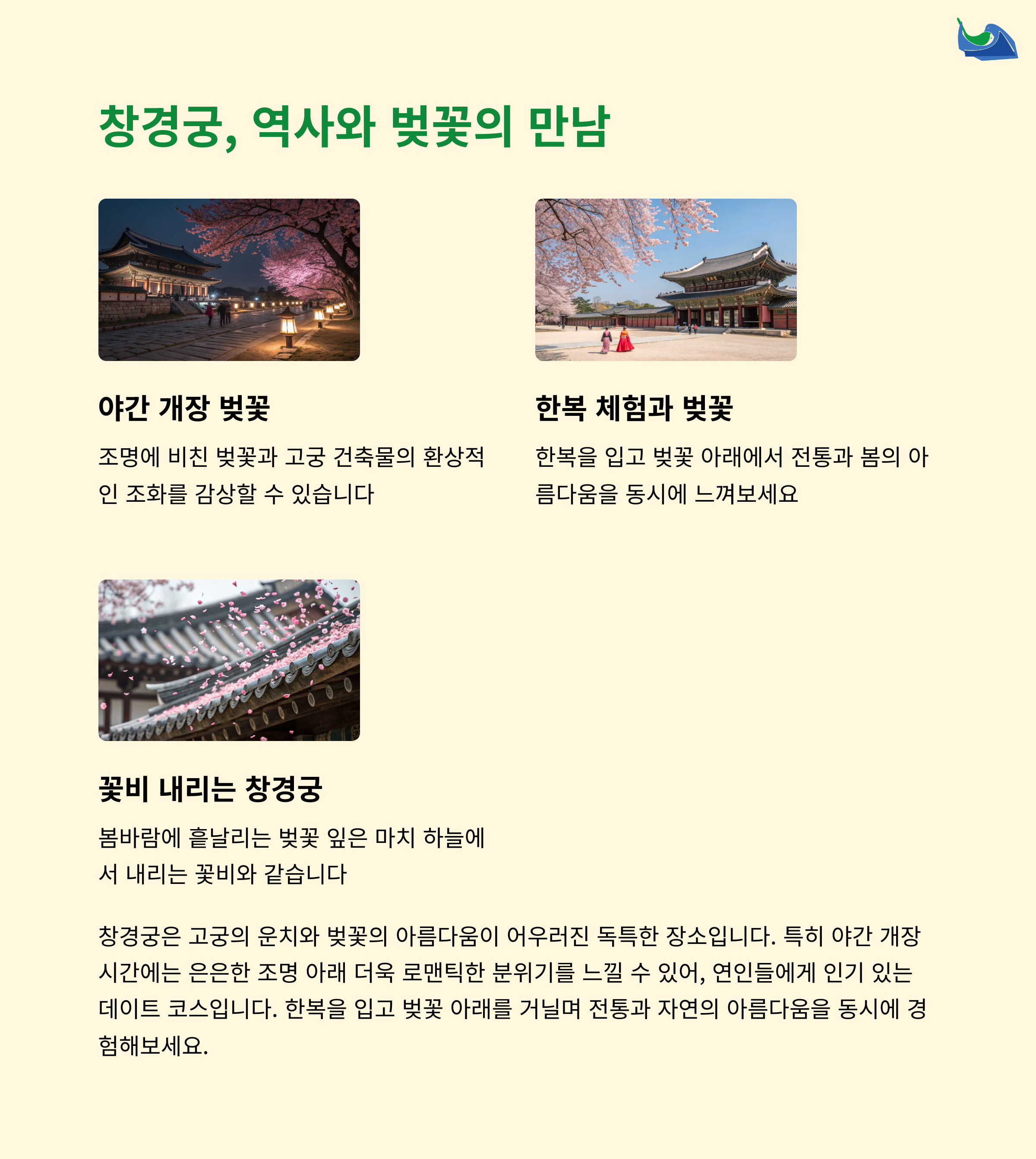 | 벚꽃 개화 시기 | 대표 명소 | 추천 활동 |